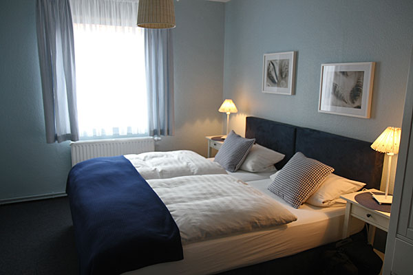 Untergebracht sind wir wieder im Gästehaus Heidi Weiß am Deichweg, ganz in der Nähe der Alten Liebe. Wir haben ein ganz neu renoviertes Zimmer bekommen, sehr groß und gemütlich.