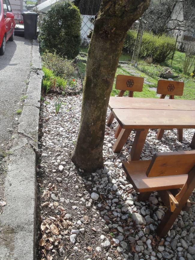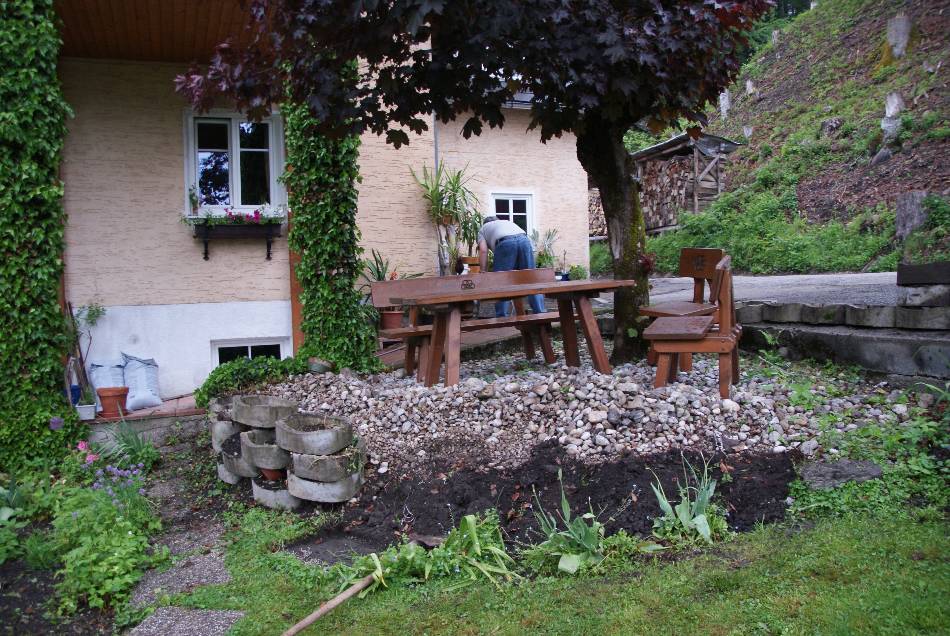 Da seht ihr unseren Sitzplatz und der wird nun neu gemacht. Die Löffelsteine kommen weg und dann wird aus schönen normalen Steinen eine Mauer gelegt.