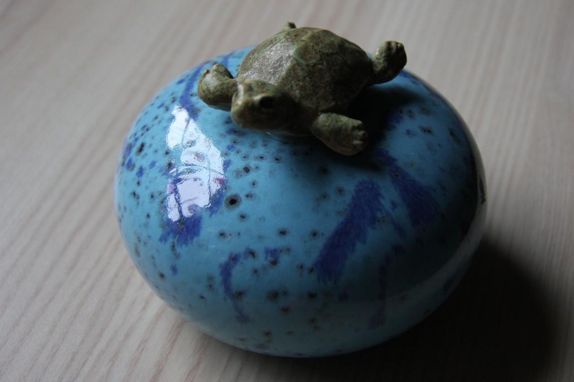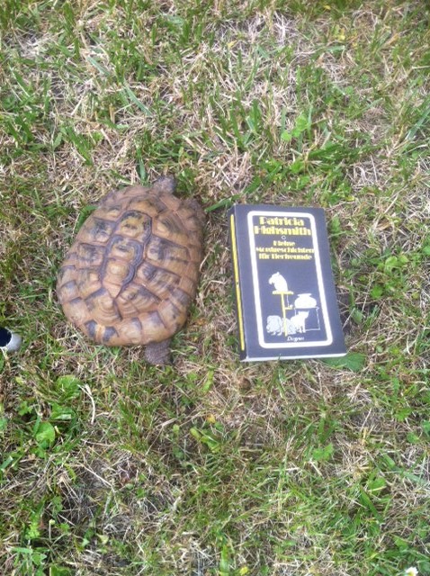 Gestern abend habe ich mich mit meiner Schwester über Schildkröten unterhalten - sie hat ja welche auf Kos gesehen und ich habe einen silbernen Schildkrötenanhänger von ihr bekommen. Und dann haben wir mal in die Papier unserer Kröten geschaut, für den Dicken haben wir welche und für eine der Kleinen - für die 2. fehlen sie noch und ich fürchte, die sind verschollen. Auf jeden Fall wollte ich ja schon immer mal nach der Art schauen - und dabei haben wir entdeckt, nicht nur die gleiche Art, sondern exakt vom gleichen Züchter! Das ist doch nun wirklich ein Zufall. Ich habe versucht den Züchter im Internet zu finden, aber das ist mit bisher nicht gelungen. Zuletzt wohnte er in Neu-Ulm, davor in unmittelbarer Nähe von Neu-Ulm.Außerdem habe ich noch eine Schimmlinse aus Keramik mit Schildkröte und einen ganz süßen Becher bekommen. Fotos folgen.