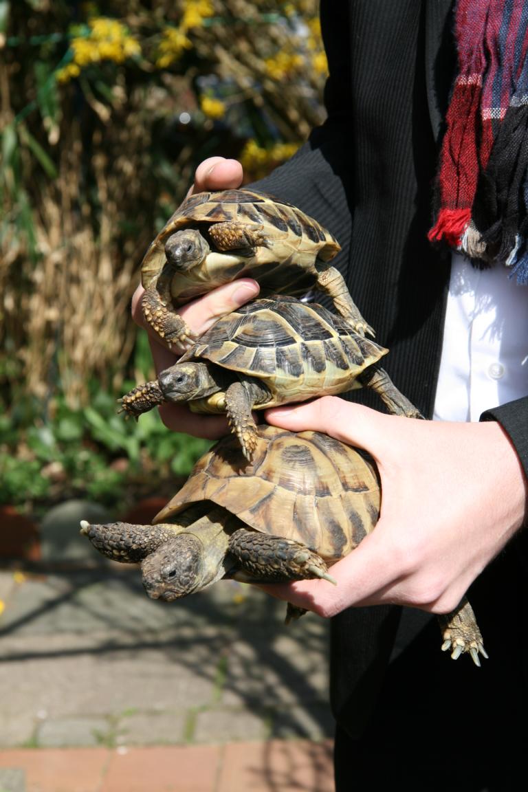 Gut ist jedenfalls, dass sie sich alle drei in dem Außenterrarium zu vertragen scheinen.Jan hat nur Sorge, dass sie eine Pyramide bilden und Einstein sich dann wieder über die Mauer zieht und abhaut