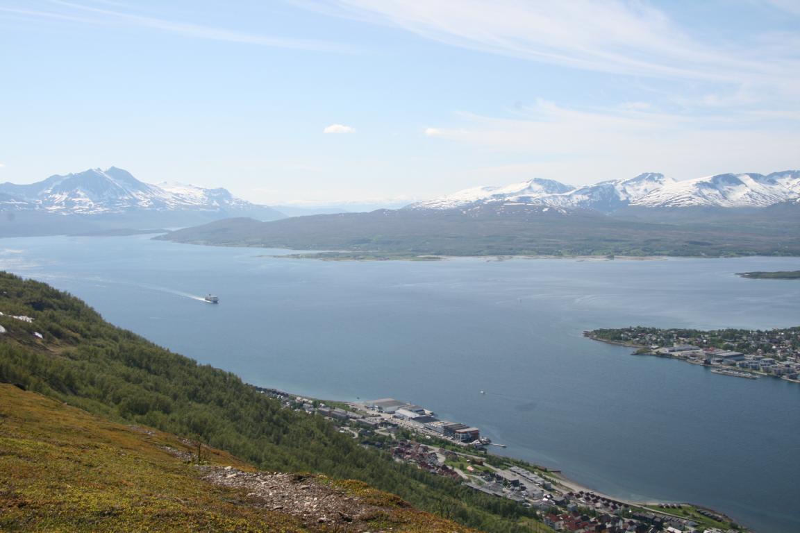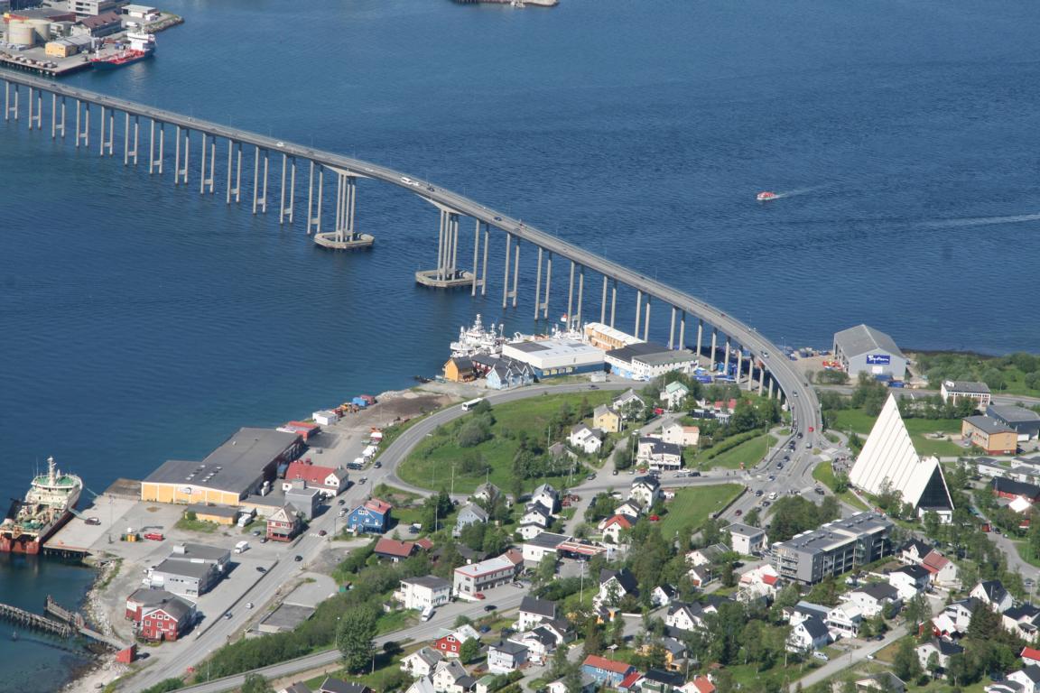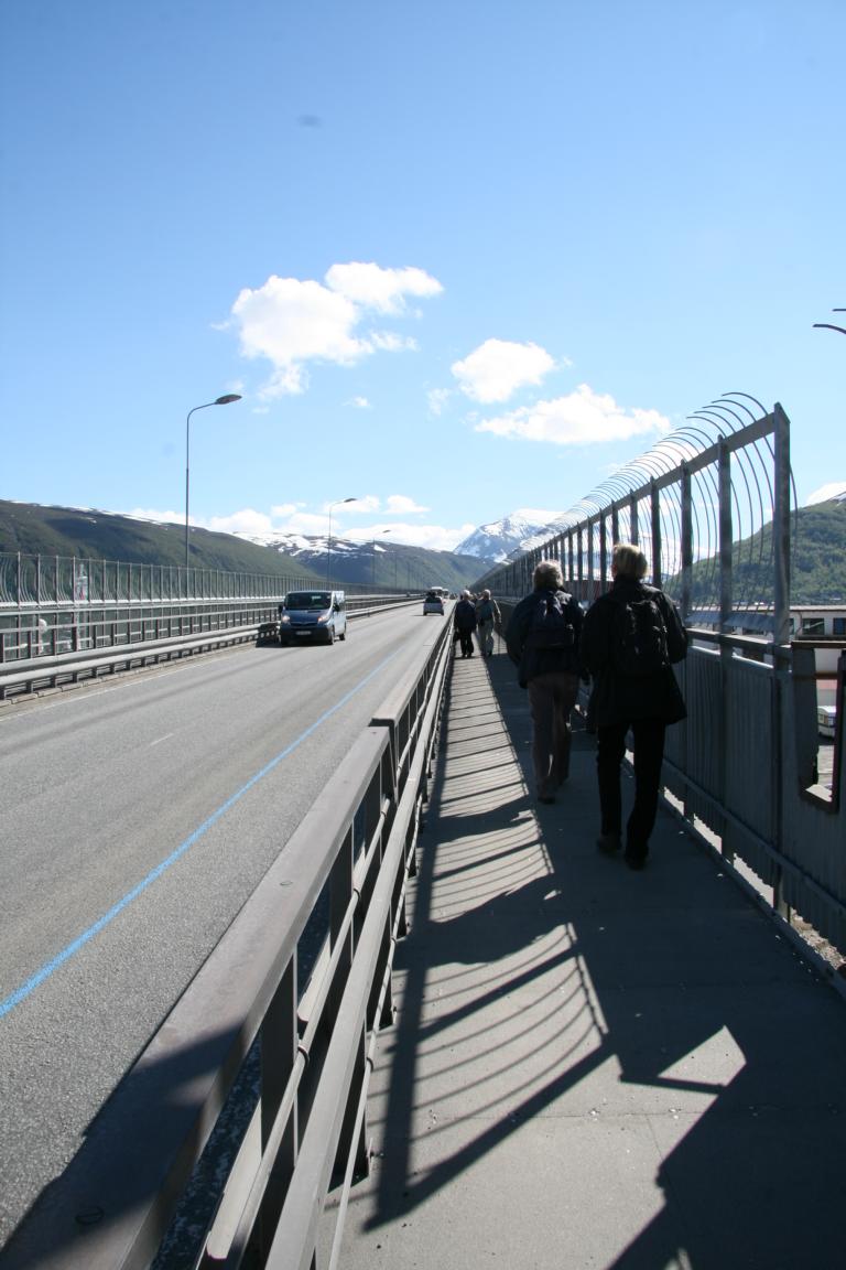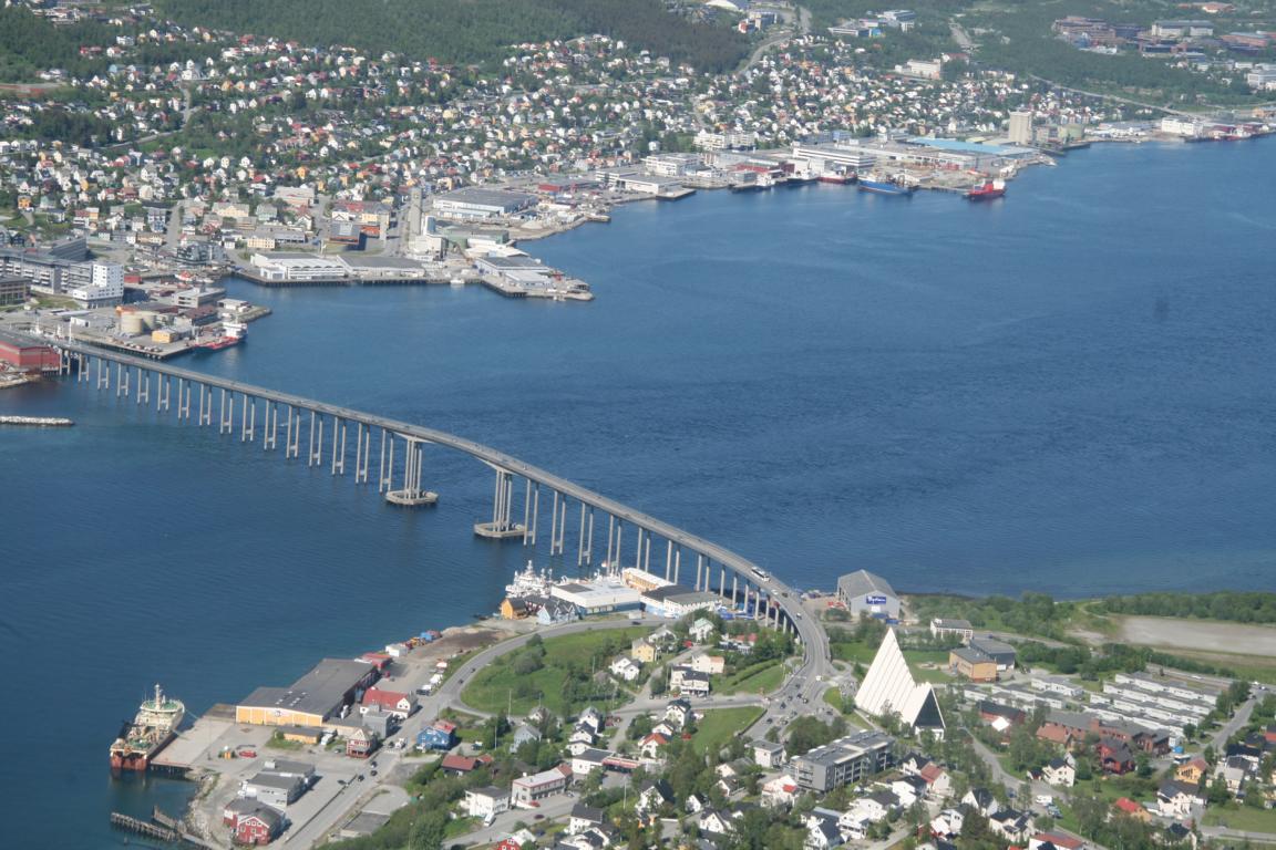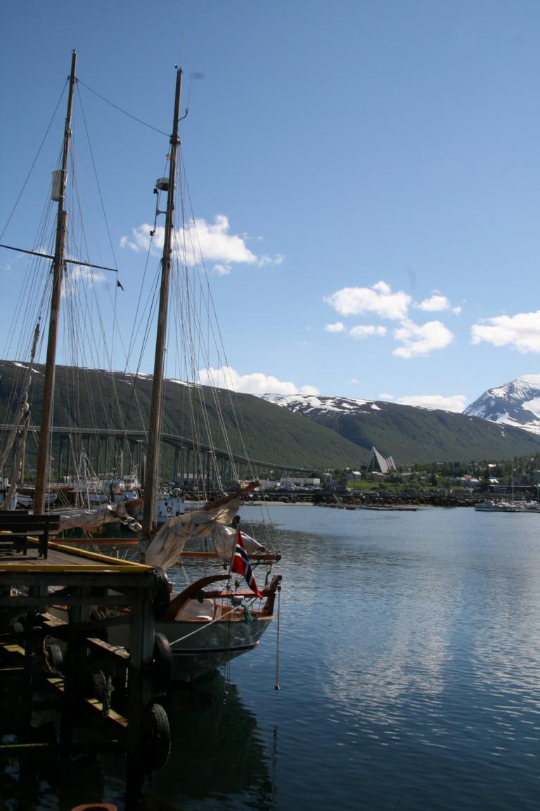 Bei diesem Himmel ist Tromsö noch schöner und deshalb machen wir uns als nächstes auf über die Brücke und zur anderen Seite zu laufen, wo eine Seilbahn hoch auf den Berg fährt