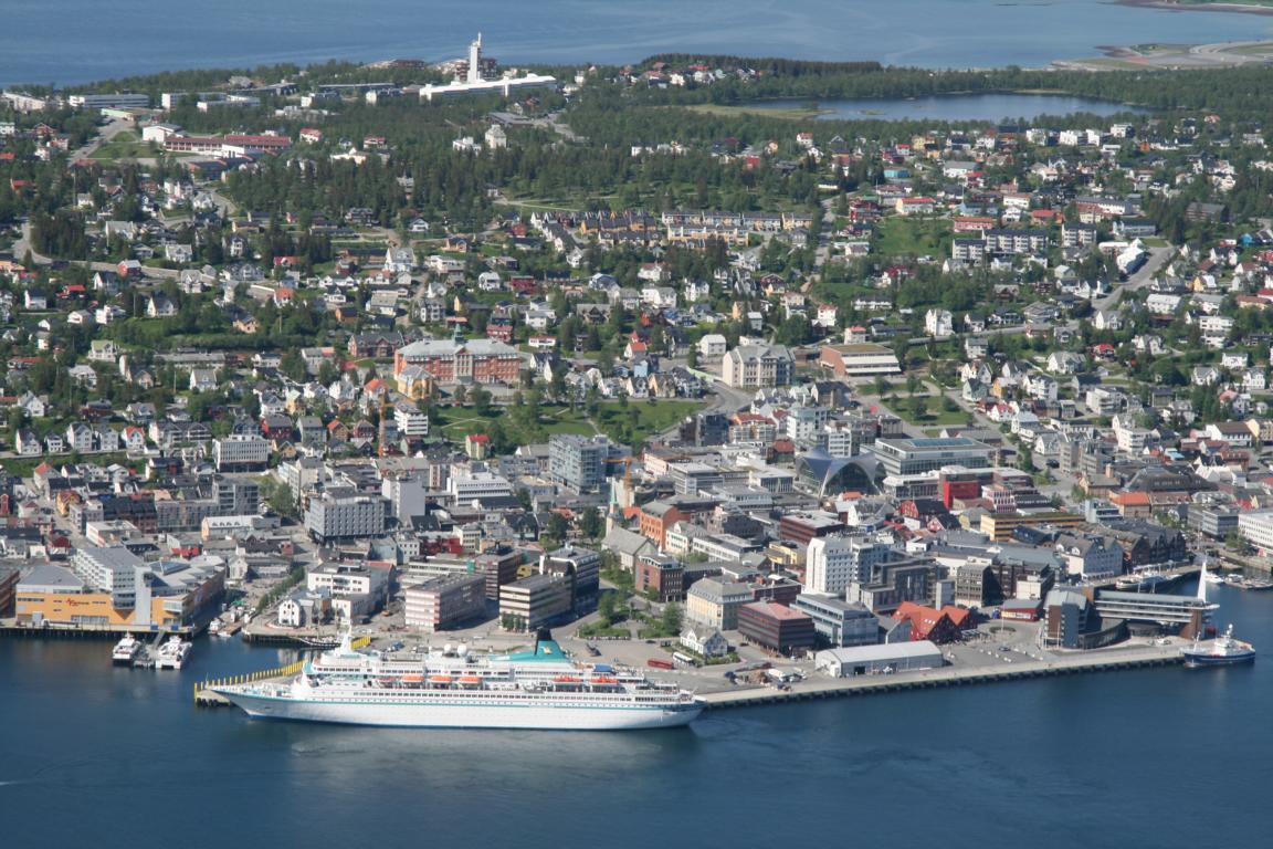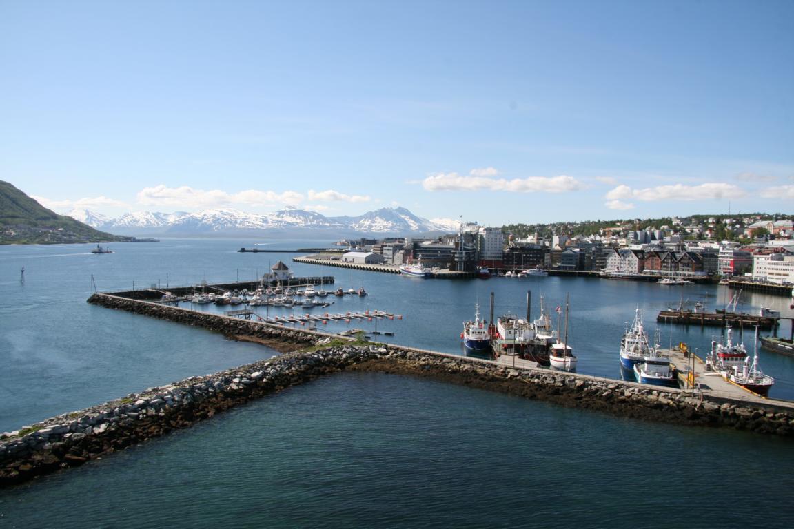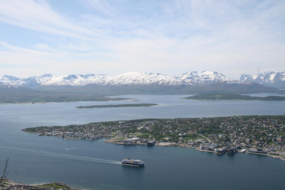 Wir haben herrliches Wetter- toller blauer Himmel über Tromsö. Nach einem sehr gemütlichen und geruhsamen Aufstehen, einem langen Frühstück hier im Hotel, ziehen wir gegen 11.15 Uhr los. Zunächst geht es zur Post, da wir noch Briefmarken brauchen. -