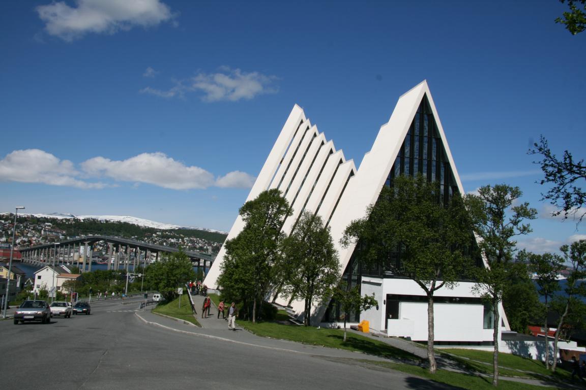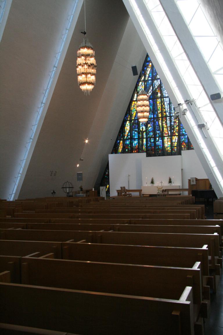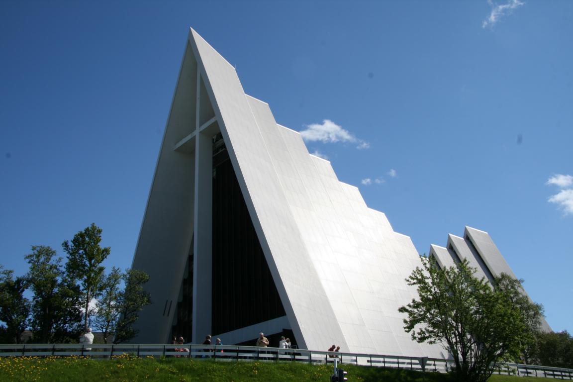Nun machen wir auch halt bei der Eismeerkathedrale, aber in die kann man nicht mehr hereingehen, denn es wird gerade geheiratet. So sparen wir das Eintrittsgeld und werfen kostenlos einen Blick in die Kirche.