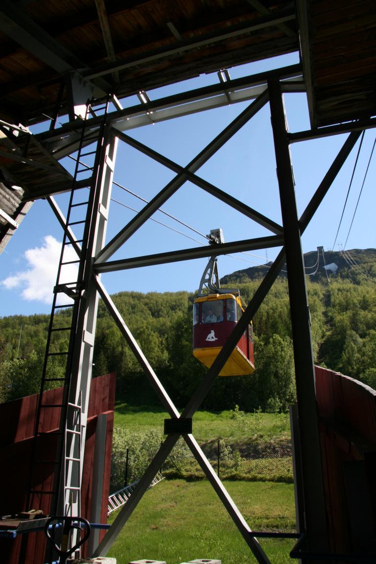 Die Wartezeit hält sich in Grenzen. Die Fahrt kostet pro Person 120 Kronen. ich denke wir warten ca. 20-30 Minuten. Dafür steigen wir dann als erstes in die Beförderungskabine und können bei der Hochfahrt schon herunterschauen-