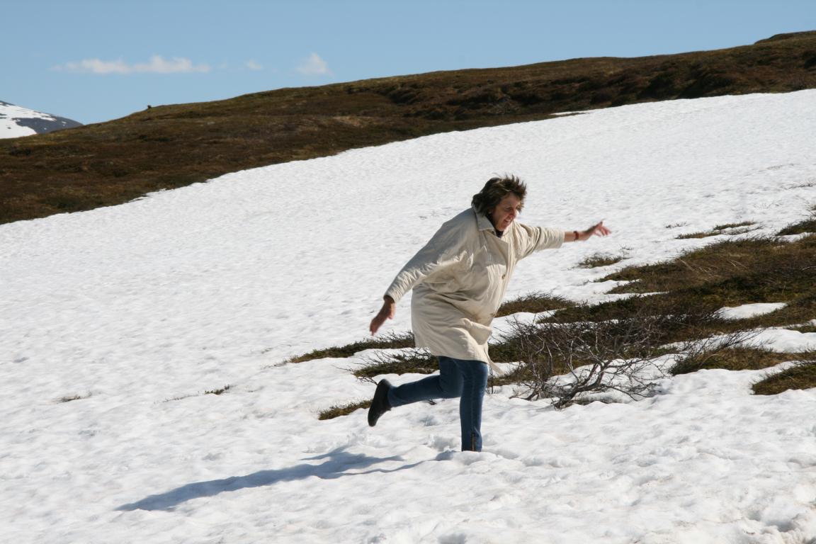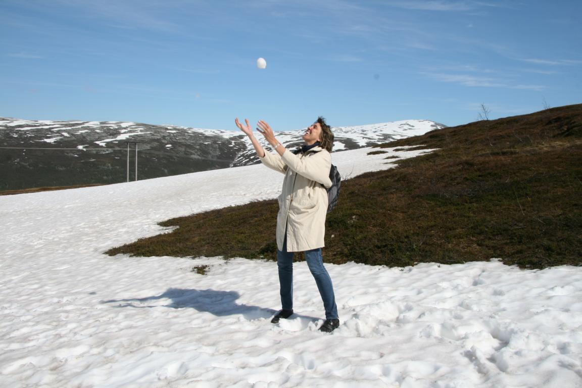 Oben auf dem Berg liegen auch noch Schneefelder und natürlich machen wir uns den Spaß, Schneebälle zu werden.