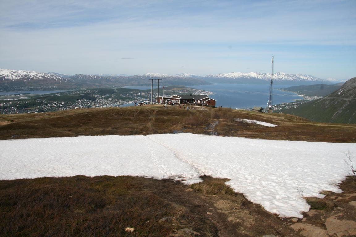 Überall liegt noch ziemlich viel Schnee... Jan erzählt, dass seinn Sitznachbar berichtet hat, dass es vor 14 Tagen in Tromsö auch noch Schnee gegeben hätte - also mein Land wäre das hier auf Dauer nicht
