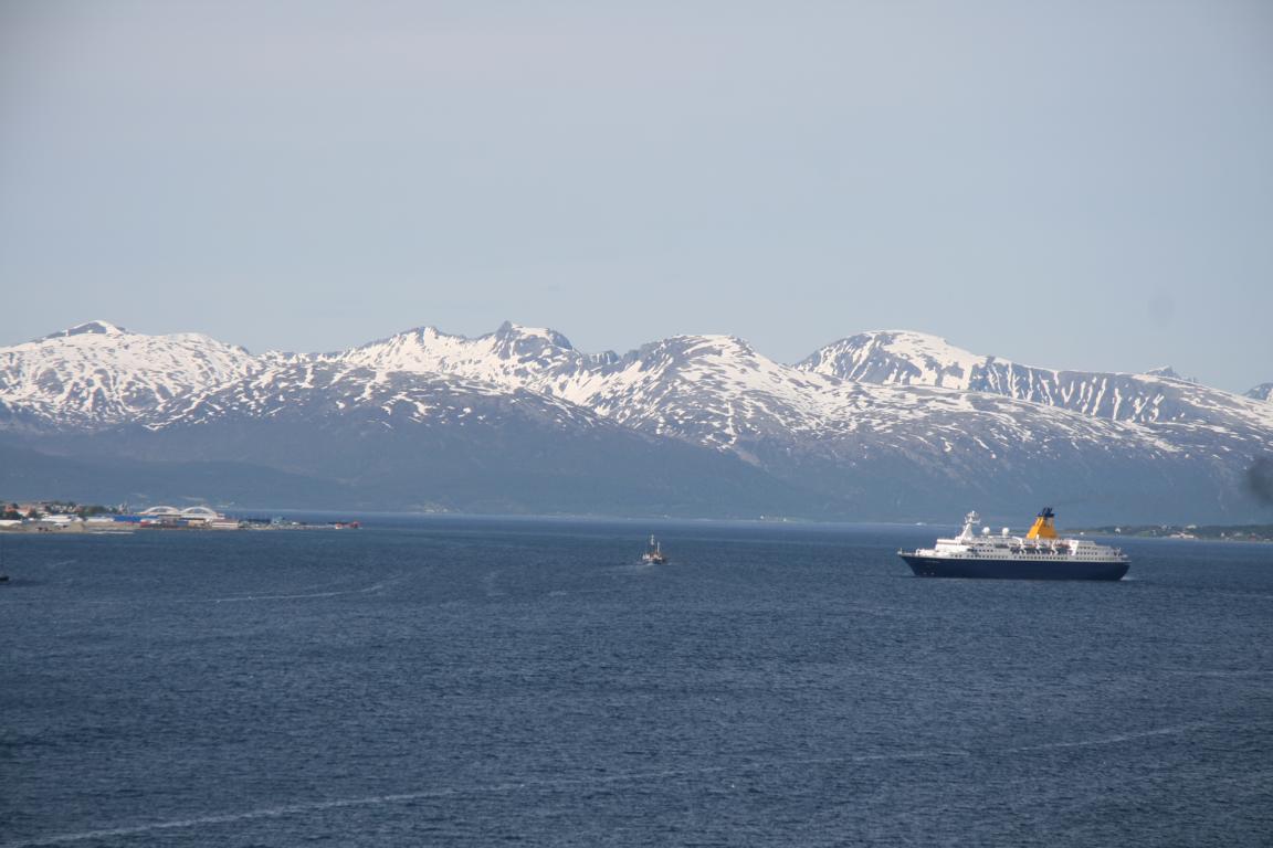 Der Kapitän macht eine Ansage, dass auf meiner Seite die Lofoten sind - aber ob diese Bilder nun die Lofoten zeigen oder erst die Folgenden - ich weiß es einfach nicht. Vielleicht kann ich es zuhause noch einmal mit Hilfe von Google nachvollziehen