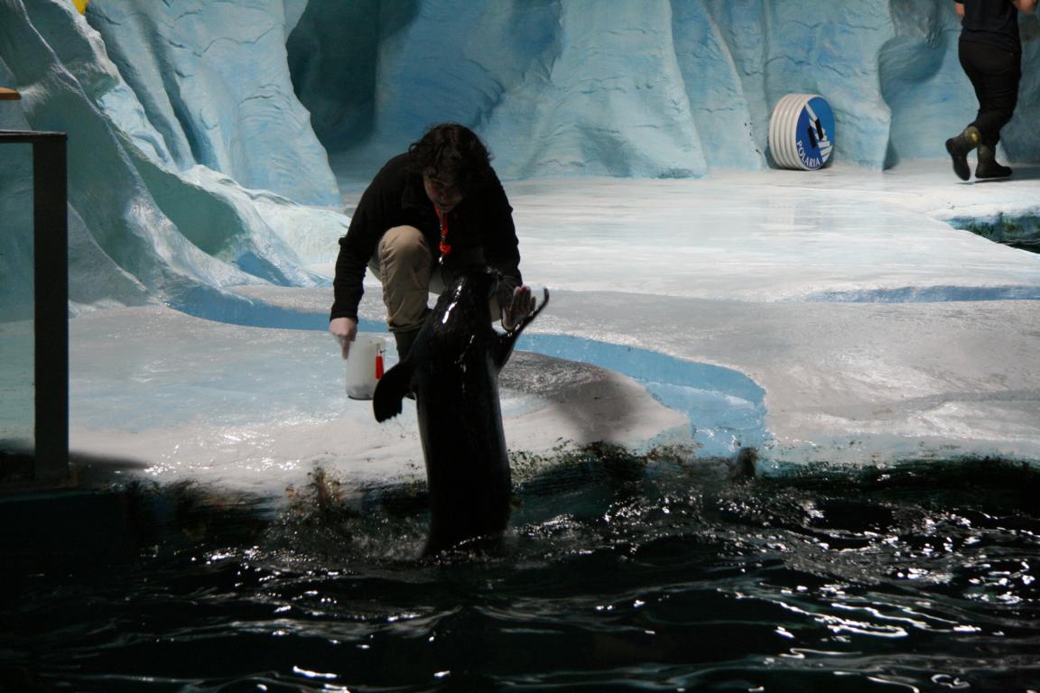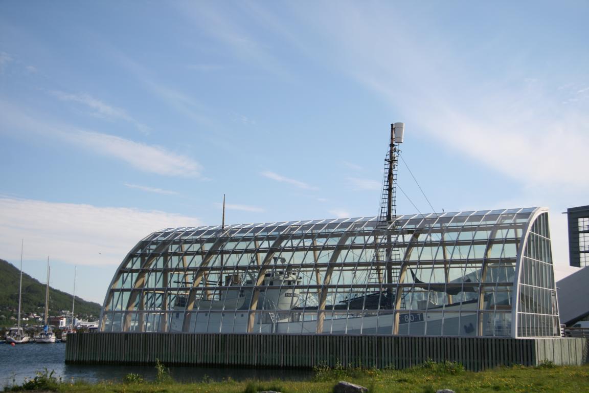Das Polarschiff sparen wir und gehen nur in das Polaria, das sich in der Beschreibung vielversprechend anhörte und für uns drei mit Seniorenrabbat rund 300 Kronen kostet. Den Inhalt fand ich eher enttäuschend. Man kann einen Film auf 5 Leinwänden von Spitzbergen anschauen, der wirklich lohnenswert ist und ca. 15 Minuten dauert. Dann geht man durch 2-3 Räume, die der Situation der Polarforscher nachempfunden ist. Ferner gibt es ein paar wenige Becken mit Fischen und Pflanzen und ein Seehundbecken, wo auch Kunststücke vorgeführt werden. Und dann wird noch an einigen Tafeln etc. die Gefährdung der See durch die Umweltverschmutzung dargestellt, und das war es schon. Vielleicht hätte wir doch besser in das Polarmuseum gehen sollen? Egal – aber ich denke, das Polaria muss man in Tromsö nicht gesehen haben.