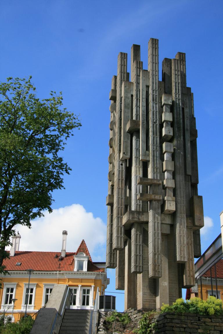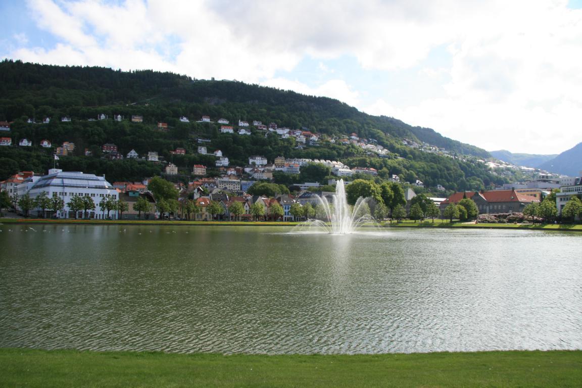 Dahinter kommt ein Park, den ich eher schnell durchlaufe, denn hier halten sich doch merkwürdige Gestalten auf und es liegt viel Müll herum.Ich komme dann in der Nähe der Griegkonzerthalle heraus, ein modernes,mich nicht ansprechendes Gebäude, das ich auch nicht fotografiert habe. Jetzt wende ich mich in Richtung des kleinen Gewässers, das in der Stadt liegt