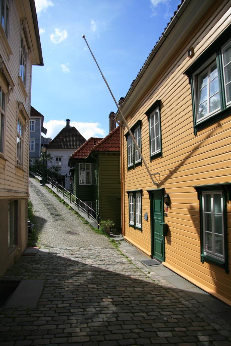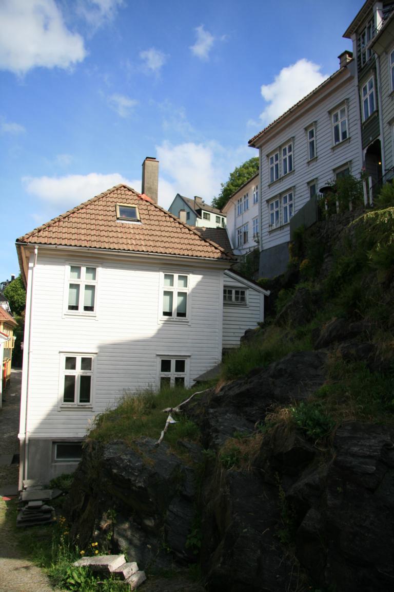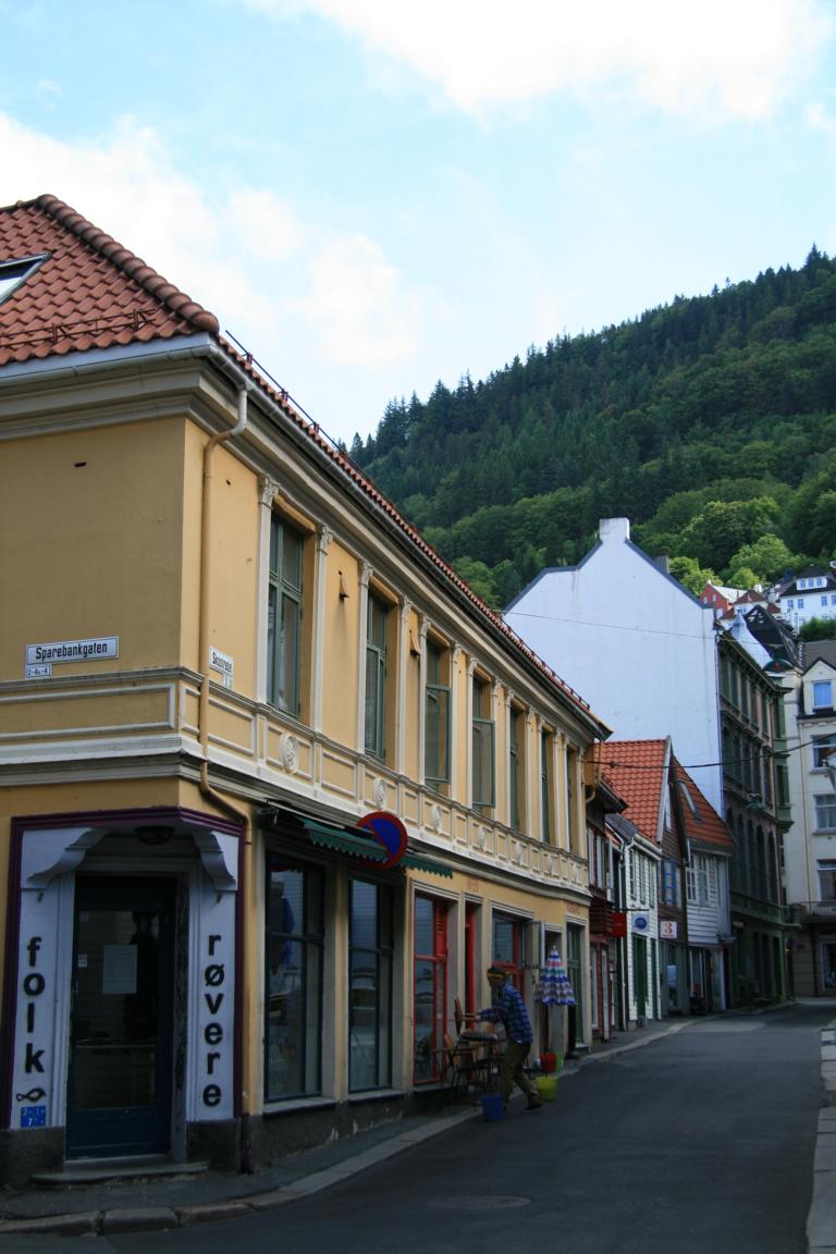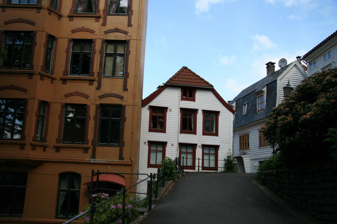 Ich mache hier aber keine Pause, denn ich will heute auf den Berg - und suche nun die Station der Bergbahn, die hinter dem Fischmarkt irgendwo sein muss. Um dorthin zu gelangen kehre ich aber jetzt nicht zurück zur Fußgängerzone (Torgaten), sondern laufe durch kleine Nebenstraßen und entdecke Neues -