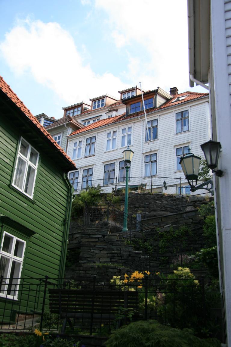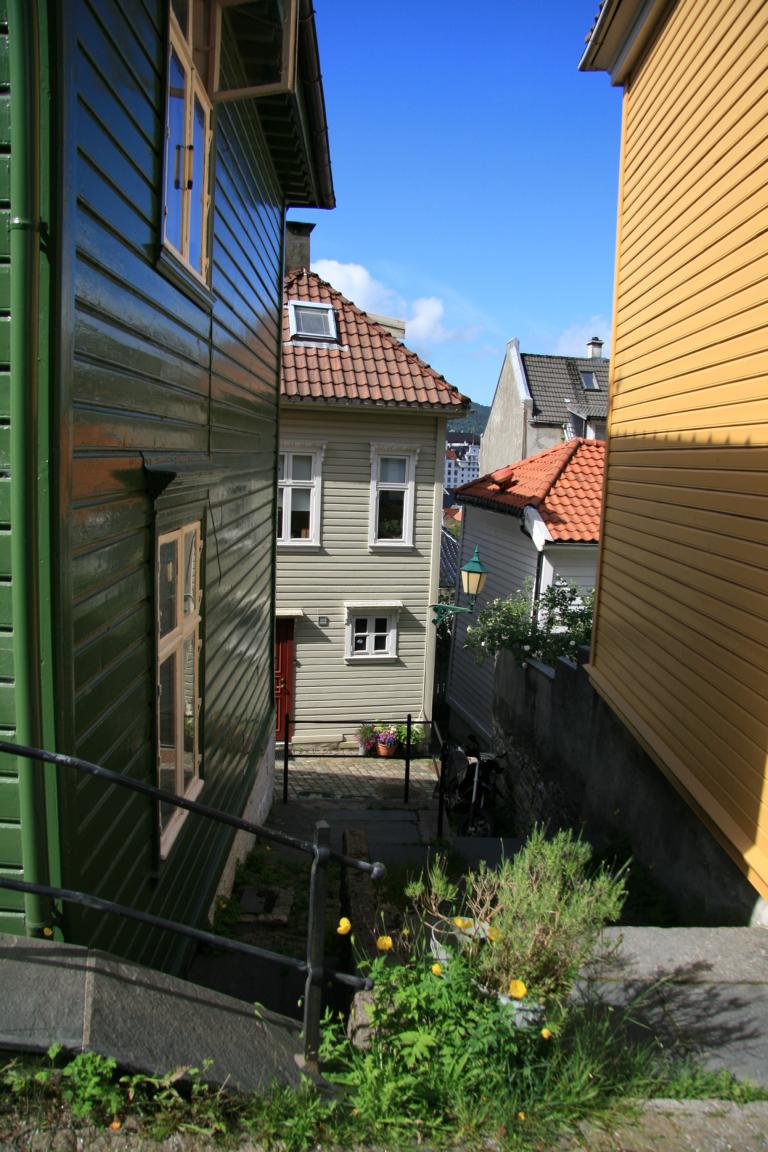 Ich befinde mich jetzt schräg hinter Bryggen in einem Treppenviertel