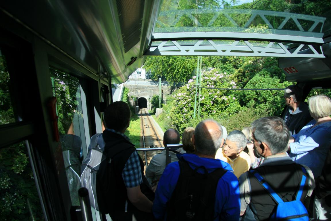 Und nach ca. 10 weiteren Minuten befinde ich mich auf der Fahrt nach oben. Die Bahn ist übrigens fast 100 Jahre alt