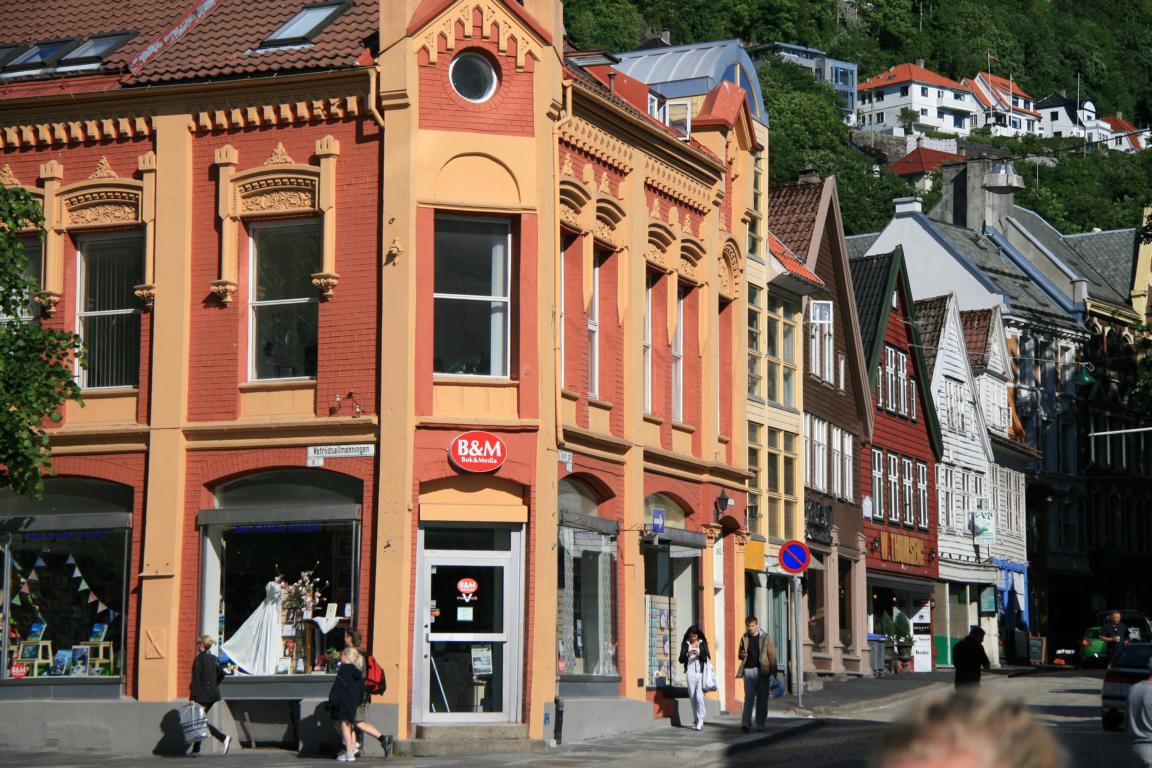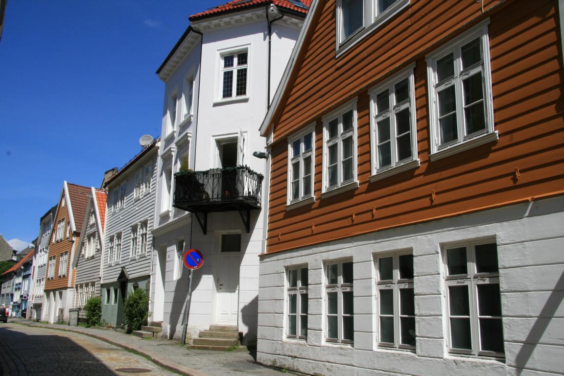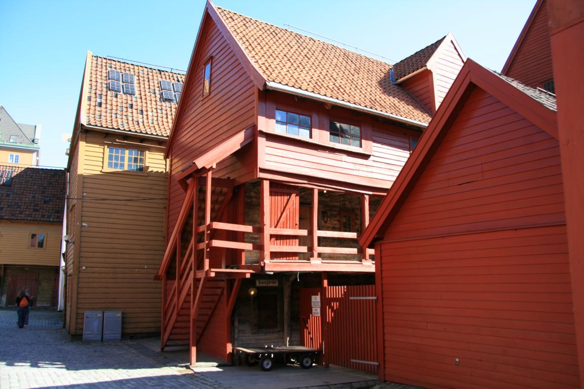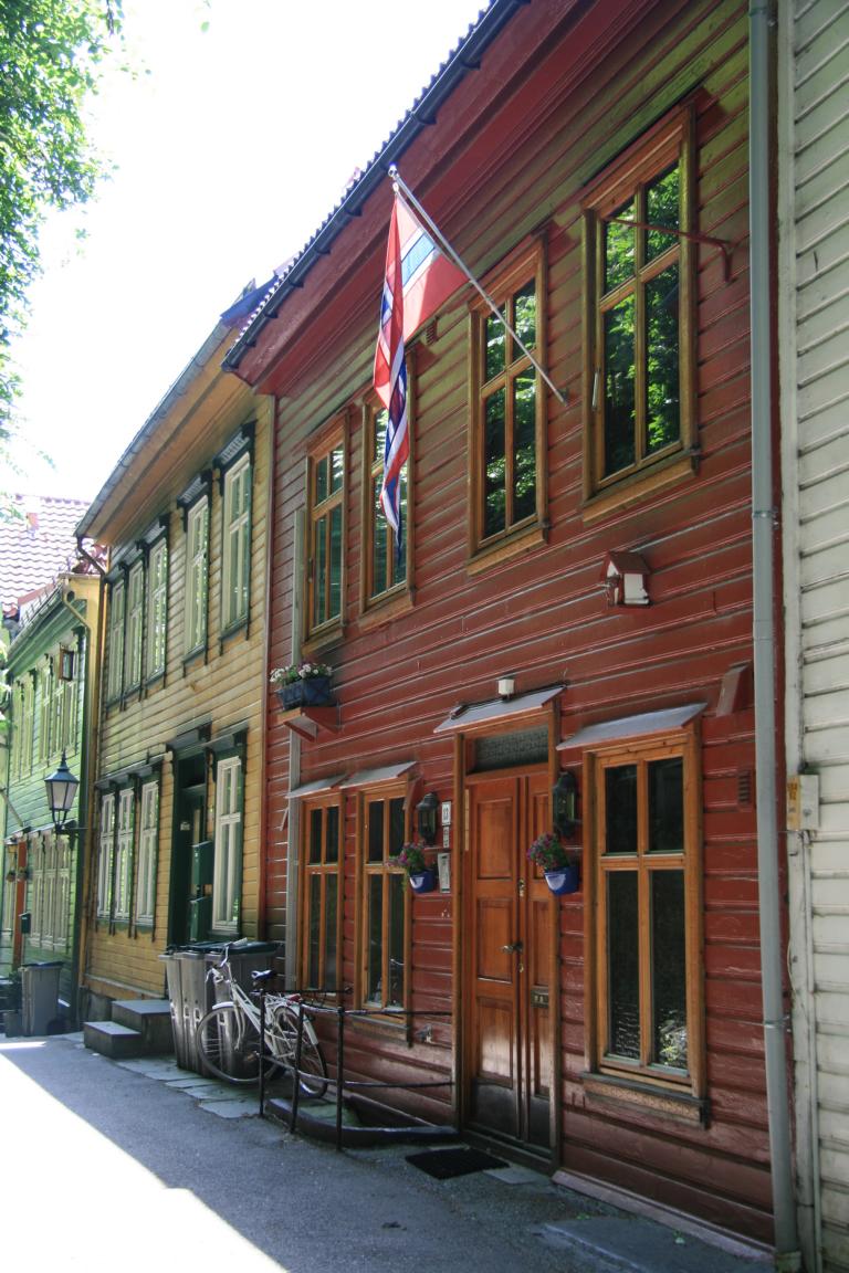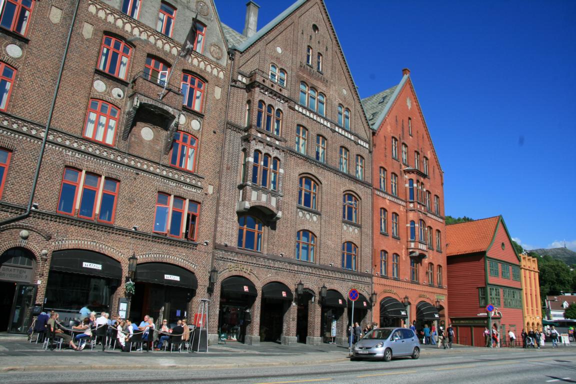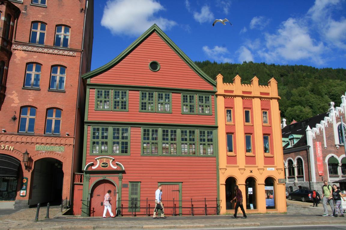 Bevor man zu den Holzhäusern von Bryggen gelangt, kommt man an alten Handelshäusern aus Stein vorbei