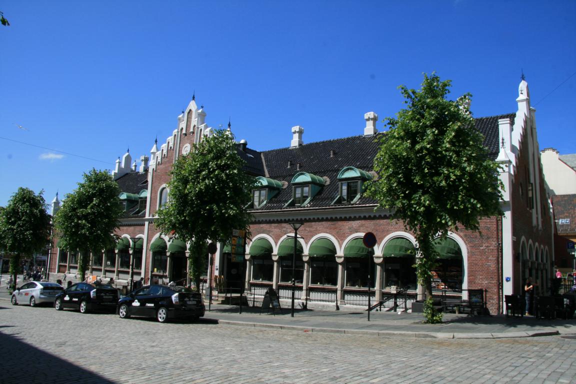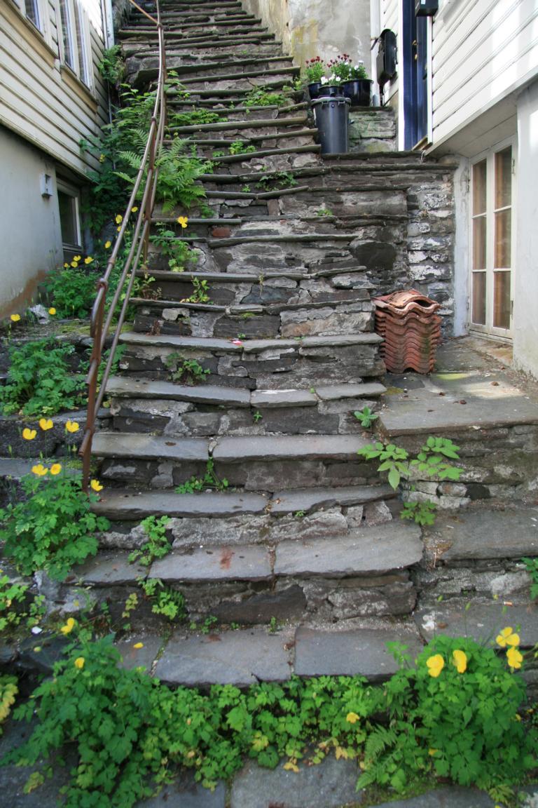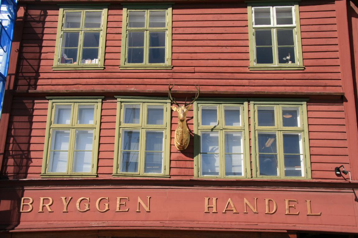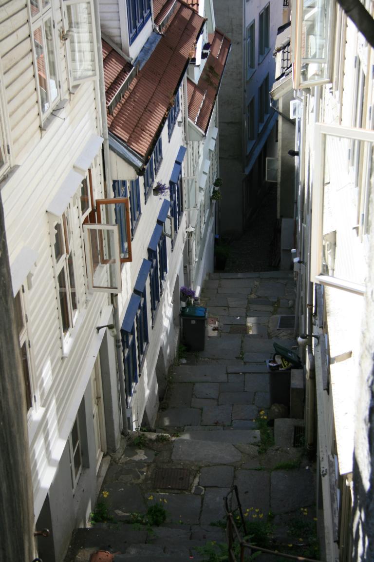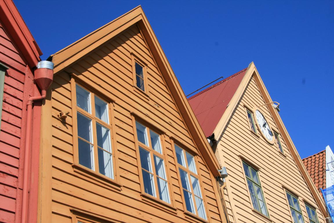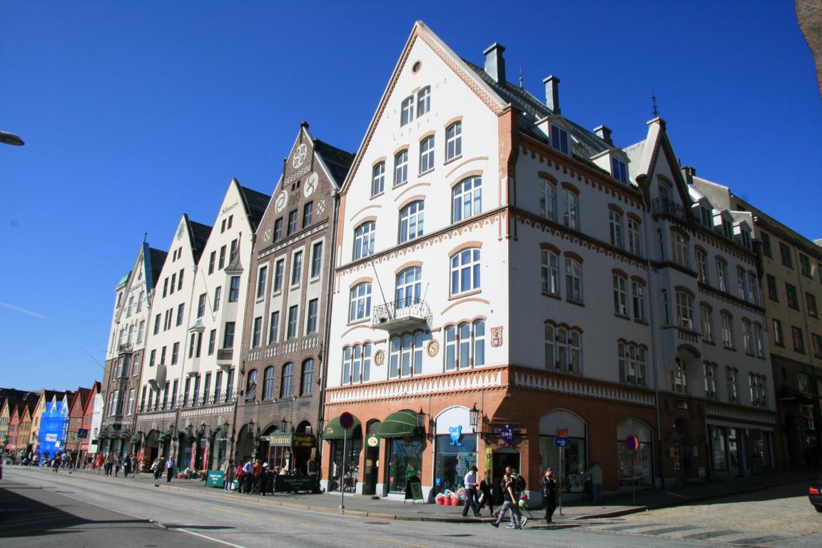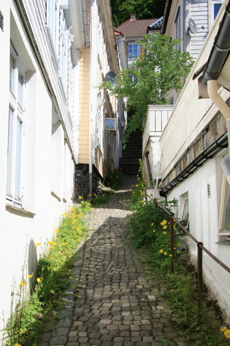 Bevor man zu den Holzhäusern von Bryggen gelangt, kommt man an alten Handelshäusern aus Stein vorbei