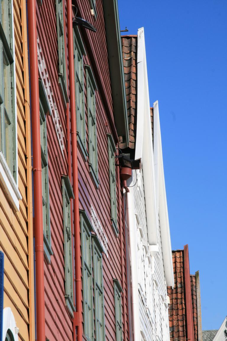 Ich bin ko aber nach einer Pause überlege ich mir doch einmal weitere Fotos von Bryggen mit dem blauen Himmel im Hntergrund zu machen - also geht es wieder los