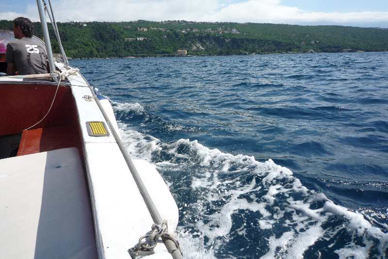 Leider könne er uns nicht mehr zurückbringen bis Opatija, wegen der BORA (trockener und böiger Fallwind) aber da wir die Fahrt schon gezahlt haben, ruft er uns ein Taxi und wir werden zurückgefahren.