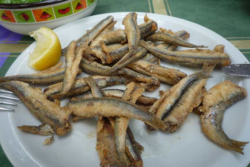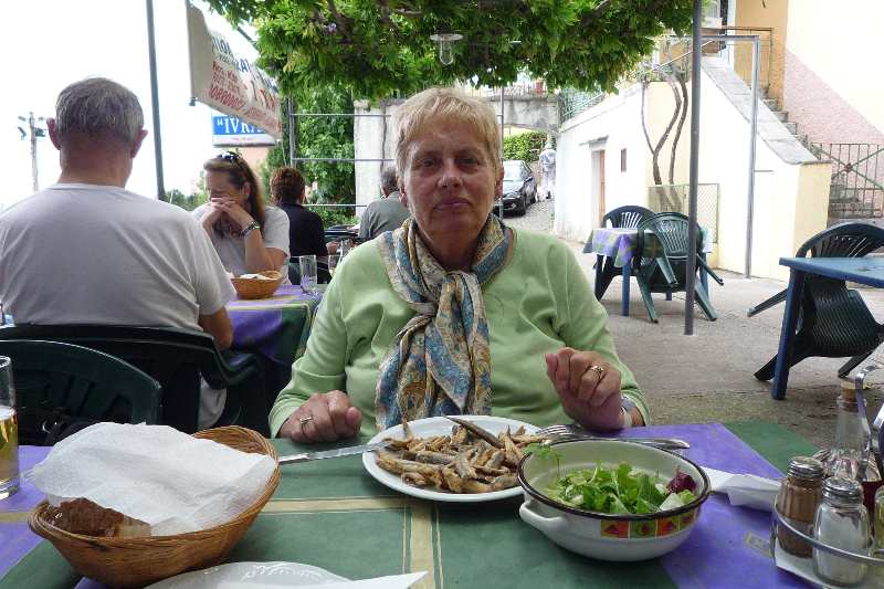 Sardellen und einen gemischten Salat. Billig und gut, dazu ein gutes Glas kroatisches Bier.