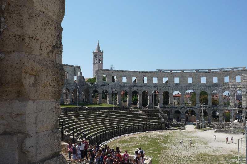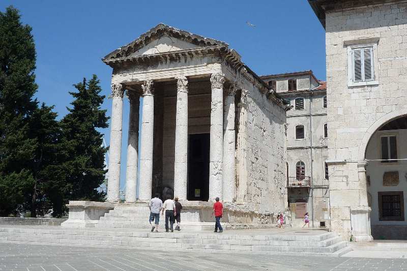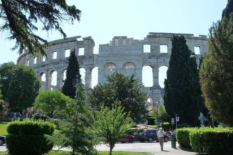 Beeindruckend, wenn auch nicht so groß wie das Amphitheater, ist der Sergierbogen, der zwischen 29 und 27 vor Christus zur Erinnerung an den Sieg Octavians in der Schlacht bei Actium erbaut wurde.