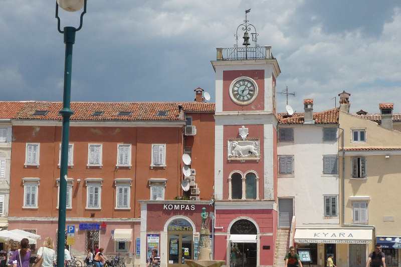 Überthront wird die Altstadt von der Kirche Sveta Eufemija (Hl. Euphemia) aus dem 18. Jahrhundert. Wahrzeichen der Stadt ist der auf dem höchsten Punkt der ehemaligen Insel stehende Kirchturm, dessen Vorbild der Campanile in Venedig ist.
