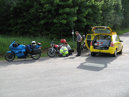 Ende - aus. Für mich war die Tour vorbei. Es wurde ein Abschleppdienst bestellt. So lange bis er kam, es vergingen so ca. 2 Stunden, gingen wir essen. Meine Freunde überlegten, was sie machen sollten, entschieden sich aber zur Übernachtung und Weiterfahrt. Nach einem Anruf heute, erzählten sie mir, dass sie noch nach Oschersleben weiterfahren, da dort ein Autorennen statt findet. Schade für mich...