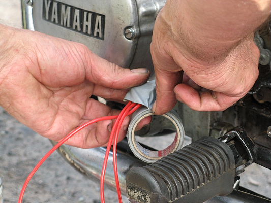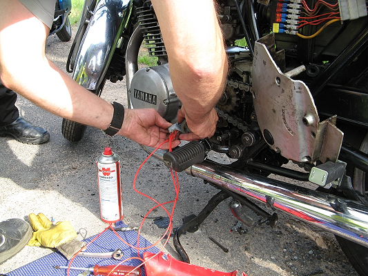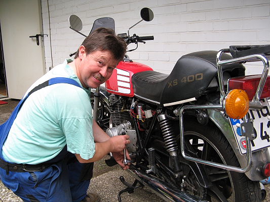 Das Wetter hielt sich gut. Wir starteten um 9 Uhr gestern morgen. Eine schöne Strecke über Extertal, Barntrup, Blomberg, Schieder Schwalenberg und Brake. Hier hatte ich schon Probleme mit der Batterie, die Maschine ging immer wieder aus. Vorsichtshalber kaufte ich eine neue Batterie und baute sie ein. Weiter ging es über Beverungen, Richtung Uslar, Adelebsen, Witzenhausen, Bad Soden, Sontra, kurze Zeit später an der B 400 in der Nähe von Ulfen passierte es. Die Yamaha muckte schon wieder und ging dann endgültig aus. Wir riefen den ADAC , der nette Mensch nahm einige Messungen vor und stellte fest, dass kein Ladestrom von der Lichtmaschine an der Batterie ankam. Die Suche begann. Er wurde fündig, einige Kabel waren gebrochen, die er provisorisch reparierte. Aber das half nix, weil auch in der Nähe der Lichtmaschine vermutlich noch ein Kabelbruch vorliegt, den er aber nicht reparieren konnte.