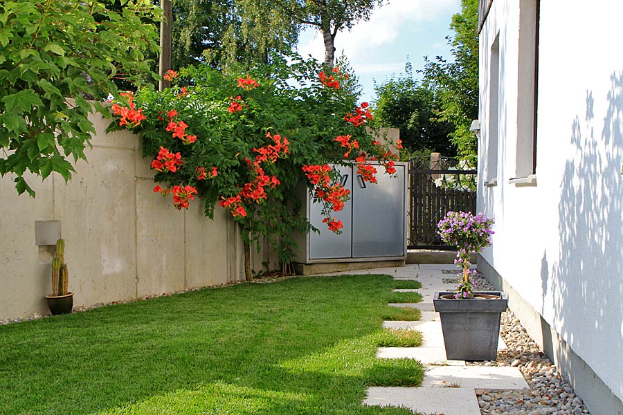 Sieht wunderschön aus die Trompetenblume, und erst der Rasen, wie ein Englischer Rasen. Hast Du den extra fürs Foto gemäht ???????