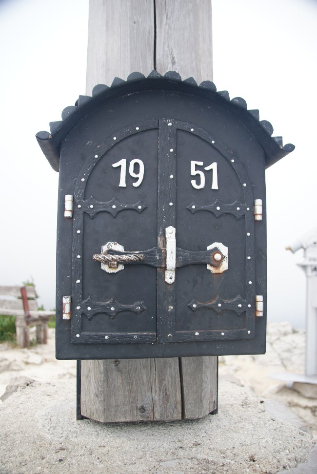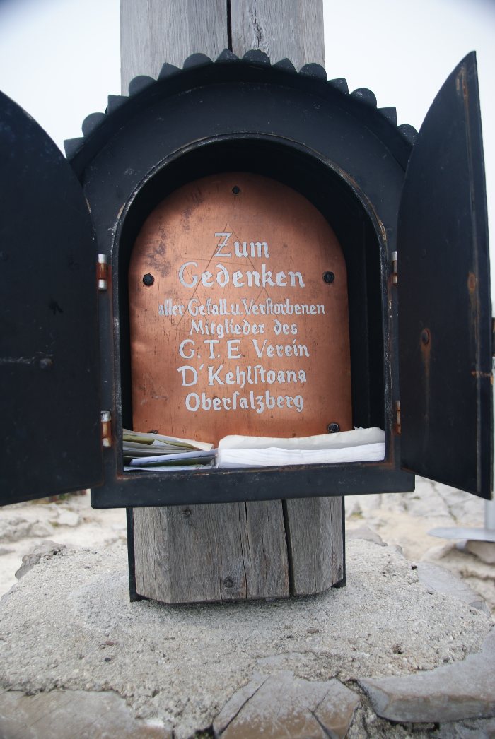 Das Gipfelbuch - in dem Fall auch die Erinnerung an die Gefallenen - ist in einem Kasten. Der hat eigentlich keinen eigenen Namen, ist nur zum Schutz für das Gipfelbuch.