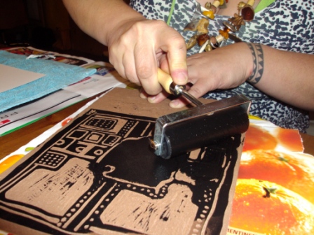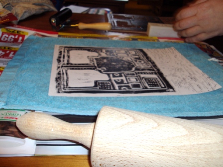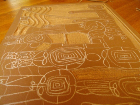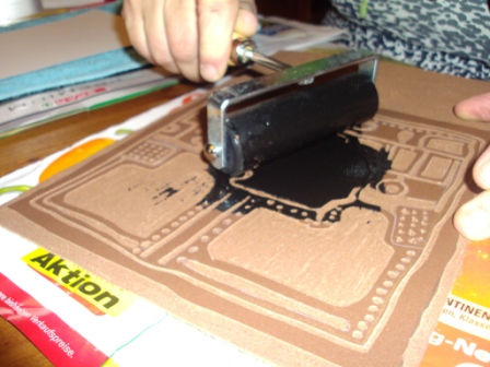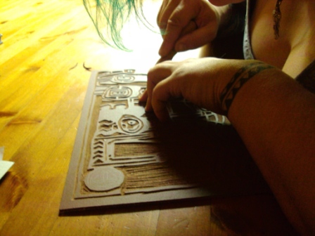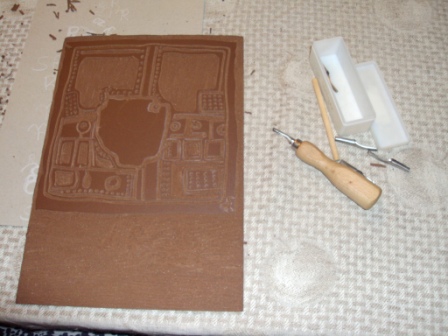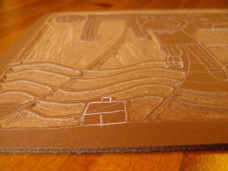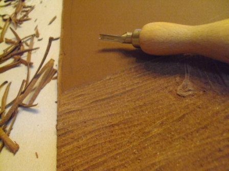 Danach hab ich mit den Schnitzmessern alles raus geschnitten, was auf dem Bild hinterher WEISS sein soll.