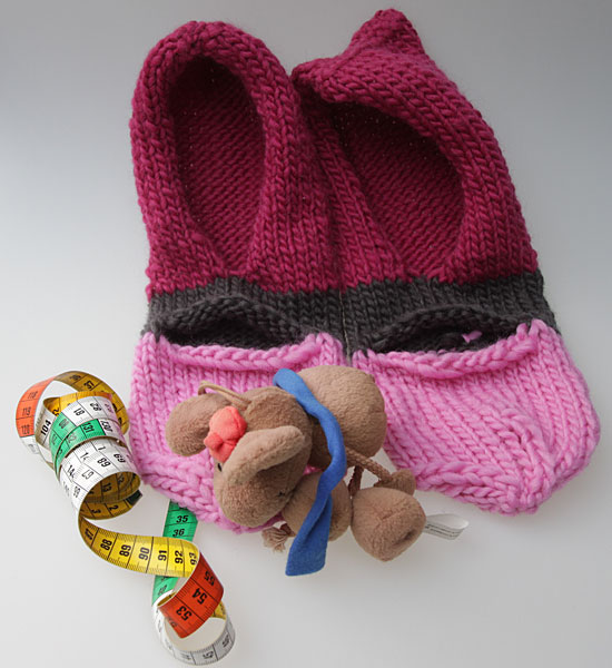 Nun wechselt man die Farbe und strickt mit Rose weiter. In dieser 11. Runde schlägt man wieder 12 Maschen an. Insgesamt 16 Runden in Rose stricken, dann folgt die Spitze: