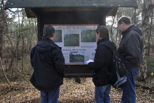 Wir parkten also unser Auto auf dem Parkplatz bei der Neuen Moorhütte ung gingen los, immer in Richtung, was das GPS-Gerät uns sagte.