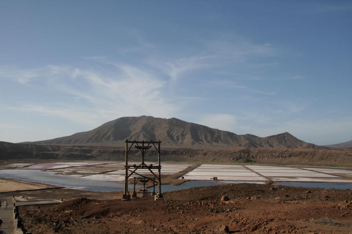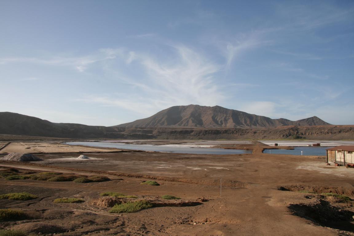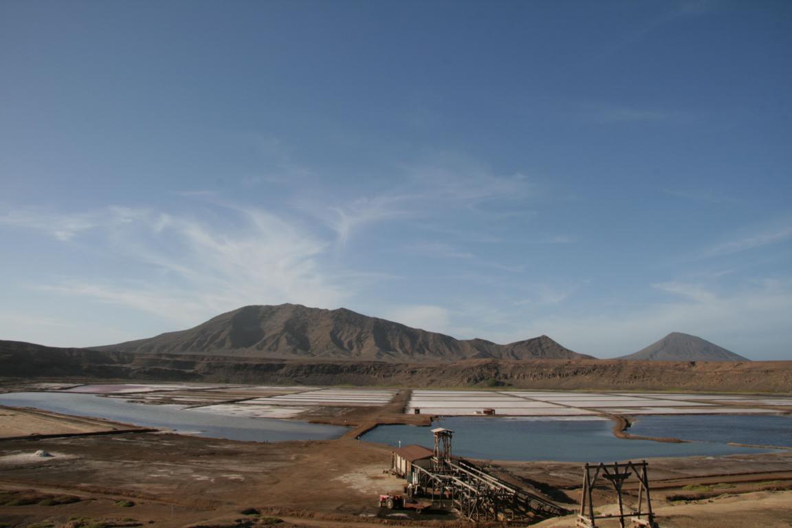 Dort befindet sich ein Vulkankrater mit ca. 900 Metern Durchmesser - Die Kapverden sind vulkanischen Ursprungs. Und in diesem Krater ist eine große Saline.