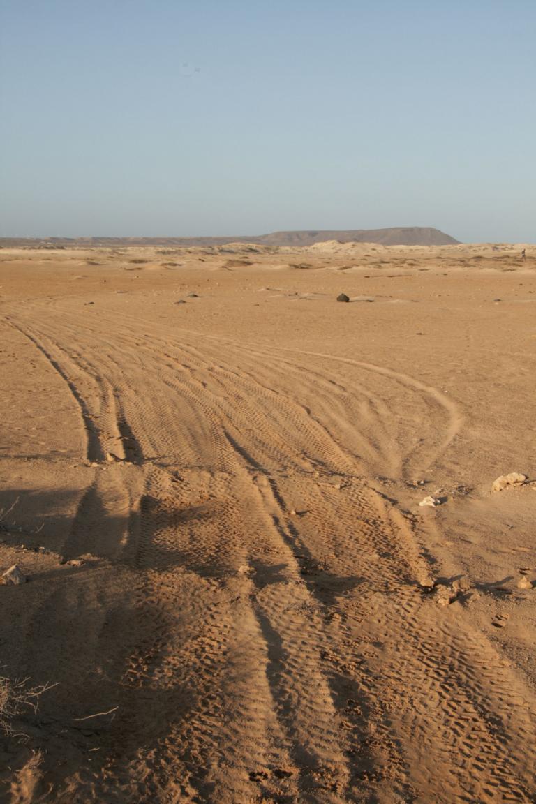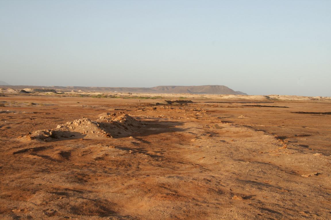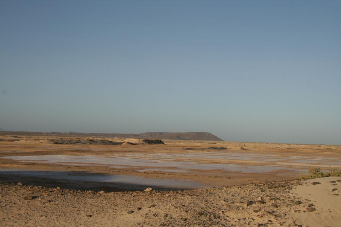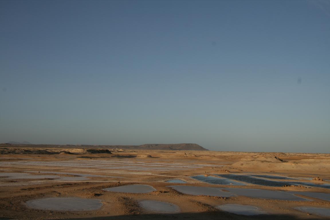 Dort befindet sich ein Vulkankrater mit ca. 900 Metern Durchmesser - Die Kapverden sind vulkanischen Ursprungs. Und in diesem Krater ist eine große Saline.