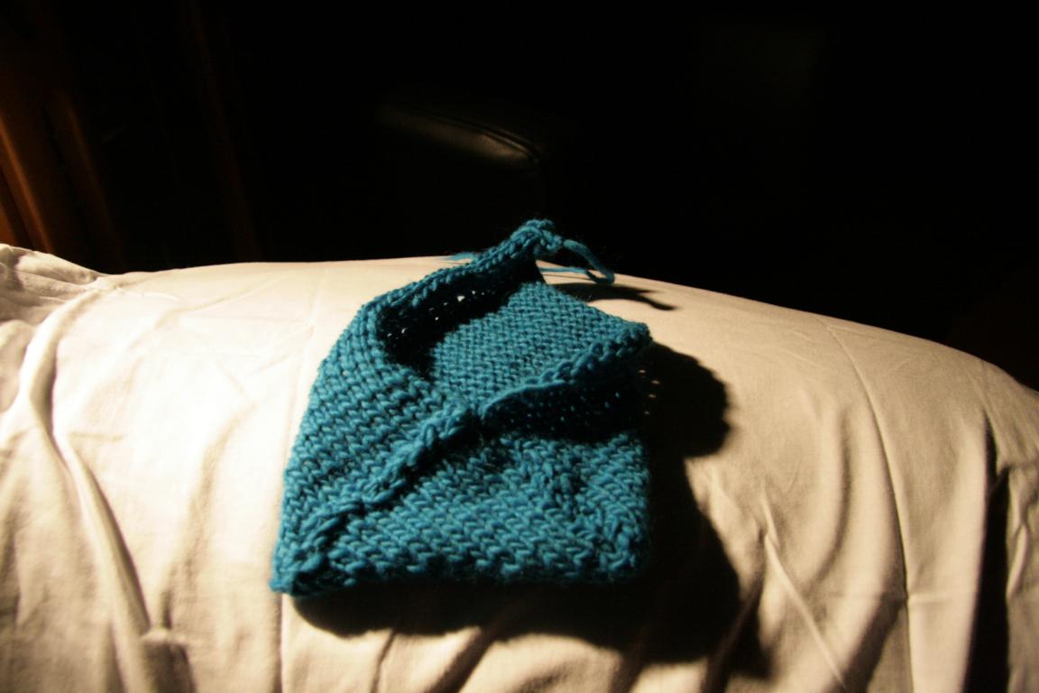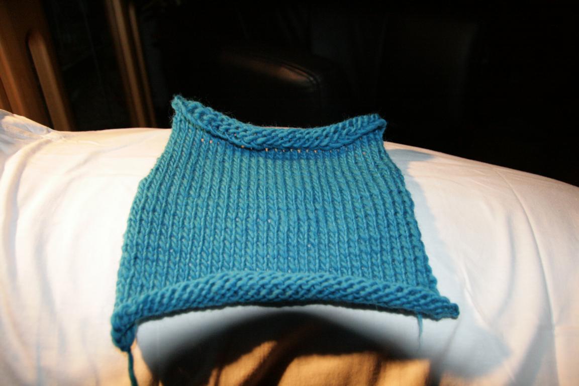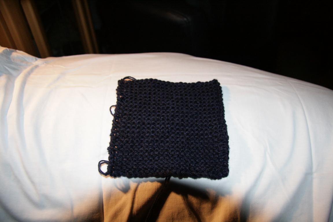 Natürlich hatte ich auch hier nicht die richtige Wolle - nur 4 fädrig - diehabe ich dann doppelt genommen und ein Quadrat aus 24M und 44 R gestrickt.