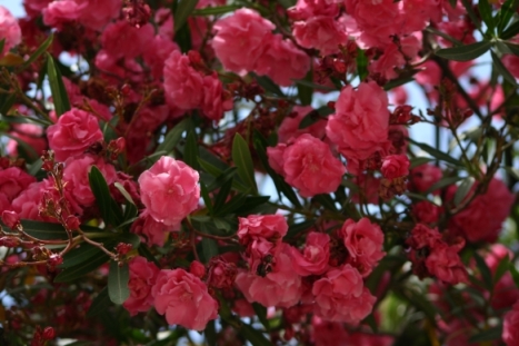 Es war heiß in Mallorca, und dies macht sich in der Natur schon bemerkbar. Die Felder sind bereits braun. Das gibt aber auch tolle Kontraste zu den Bäumen, den bräunlichen Häusern, dem blauen Himmel.... In der Umgebung von Colonia St. Jordi stehen zudem zahlreiche Windräder. Ein Traum sind die blühenden Oleander überall, in weiß, rosa, aprikot, rot- unglaublich!. Man findet sie nicht nur in de Gärten, sondern auch sle Straßenbegrenzung, sogar auf der Autobahn. Hier einige Eindrücke aus der Umgebung von Colonia St. Jordi: