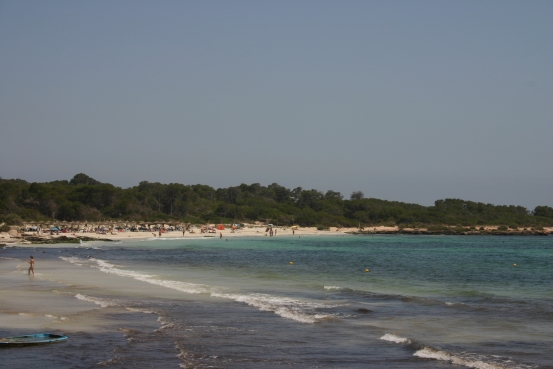 Unseren Mallorca-Trip haben wir isoliert gebucht. Hinflug mit TUIfly,Preis pro Person 48 Euro, Rückflug mit Germanwings für 29 Euro pro Person. Als Urlaubsort haben wir Colonia St. Jordi gewählt, welches gut eine halbe Stunde Autofahrt von Palma entfernt liegt und uns von früheren Urlauben bekannt war. Um dorthin zu gelangen haben wir für den gesamten Reisezeitraum ein Auto über Internet bei http://www.DoYouSpain.com angemietet – Preis für die Mietzeit 18.6.-27.6. 142,11 Euro. Die Übergabe hat super geklappt. Angekündigt war, dass man das Auto vollgetankt übernimmt und leer abgibt und daher bei der Abholung daher eine Tankfüllung bezahlt. Das war auch ok. Bei dem Auto handelte es sich um einen Ford Ka – da konnte die Tankfüllung ja nicht so viel ausmachen. Ärgerlich war allerdings, dass und dann dafür 50 Euro abgeknüpft wurden- und dass bei einer Tankgröße von 40 Litern! Da ist noch Klärungsbedarf. 1 Liter Benzin kostet auf Mallorca ca. 1,09 Euro, Super 1,19 Euro. Die Straße nach Colonia St. Jordi ist super ausgebaut, so dass wir in gut einer halben Stunde dort waren. Colonia St. Jordi liegt auf einer kleinen Halbinsel, auf beiden Seiten umgeben von herrlichen Stränden. Auf der einen Seite liegt der kilometerlange, weitestgehend unbebaute Es Trenc, auf der anderen Seite, beginnend direkt an der Hafenanlage, liegen mehrere kleinere Strände. Der Sand ist weiß, das Wasser türkis wie in der Karibik. Es gibt nur zwei höhere Hotelbauten, ansonsten besteht der Ort aus 1-maximal 3-stöckigen Gebäuden. Es machen dort viele Spanier Urlaub. Es gibt einen Hafen und dort wurde auch eine Fußgängerzone eingerichtet. Vom Hafen aus ist zudem ein Rundweg angelegt worden, der die Küsten entlang um die gesamte Halbinsel führt, bis zum Strand Es Trenc. Über das Internet haben wir das Hostel Doris gefunden, ein kleines Haus mit 2 Appartements,1 Studio, 1 Familienzimmer und 10 Doppelzimmern. Es liegt inmitten von Colonia St. Jordi und wird von einer deutschen Familie geführt. Mehr erfährt man hier: http://www.pension-mallorca.de