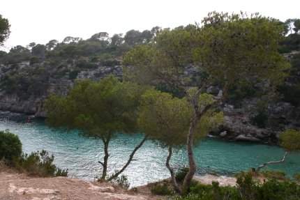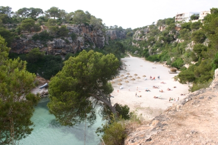Zum 5 km langen Strand Es Trenc, beginnend bei Colonia St. Jordi, gibt es nur wenige Zufahrten. Die meisten Strecken muss man sich erlaufen. Dort, wo man mit dem Auto ran kommt, kostet es auch heftig hohe Parkgebühren, nämlich 5 bzw. 6 Euro. Der größte Teil des Strandes ist unbebaut. Zwischendurch gibt es kleine Ansiedlungen. Danach folgte eine Felsenküste. Dort haben wir einen schönen kleinen Fjord entdeckt, Cala Pi