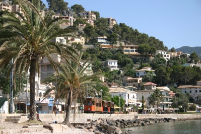Port Soller hat auch einen großen Fischerhafen- diesen haben wir aber diesmal nicht aufgesucht, sondern haben nur einen kurzen Blick an den Strand geworfen, der im Ort selber nicht der schönste ist. Dafür ist es aber auch noch eingewachsener Ort und nicht ein reines Touristennest. Von Palma aus kann man bis Soller mit einer alten Bahn fahren- ein sehr schönes Erlebnis, was wir früher mit den Kindern gemacht haben und was wir nur jedem empfehlen können. In Soller steigt man dann um und fährt mit einer alten Straßenbahn bis Port Soller. Als wir kurz an den Strand schauten, kamen gleich zwei solcher alten Bahnen angefahren- das fanden wir doch sehr nett