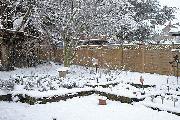 Sieht eher nach Weihnachten aus. Es lohnt sich nicht, ein Bild von meinem Garten zu machen. Wir haben zwar keinen Schnee mehr, aber es ist alles grau in grau und man sieht noch nichts Blühendes. Hilfe, wann kommt der Frühling?