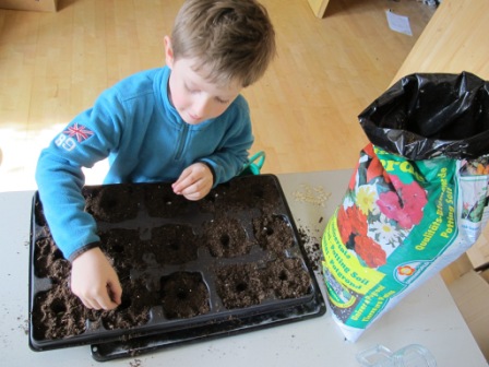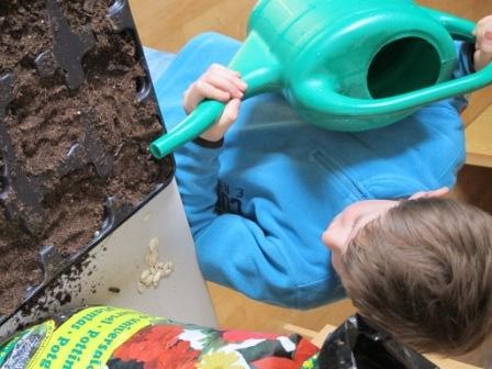 mit finn habe ich im ehemaligen schenkraum begonnen, zucchini-kerne einzupflanzen und zu gießen, die werden wir jetzt groß ziehen und dann raus pflanzen im april-mai....foto hab ich auch schon: