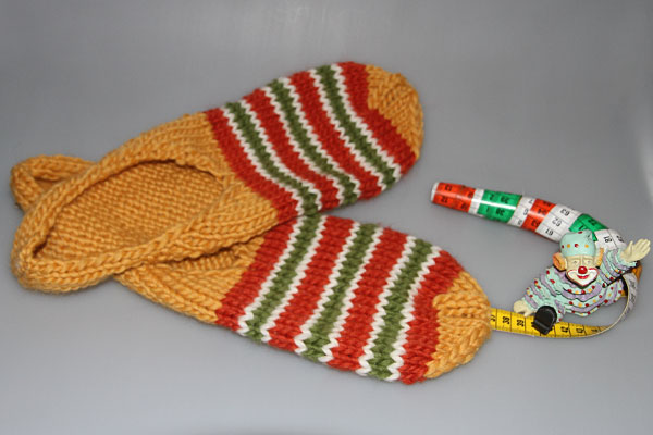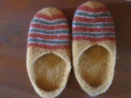 Dieses Mal habe ich ein paar bunte Clogs gestrickt und gefilzt: Da ich weiß, dass Sonja alles Bunte liebt, habe ich diese ausgesucht. >""§