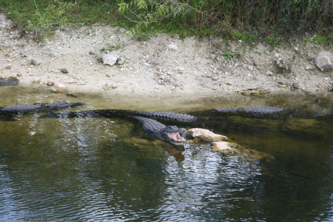 Wir fahren die "Alligator Alley" Nr.75. Entlang der Straße verläuft ein Zaun und daneben ein Wasser – Fluss oder was auch immer – und dort sehe ich dann tatsächlich mehrere Alligatoren schwimmen und sitzen.Ansonsten bietet die Fahrt nichts Aufregendes.