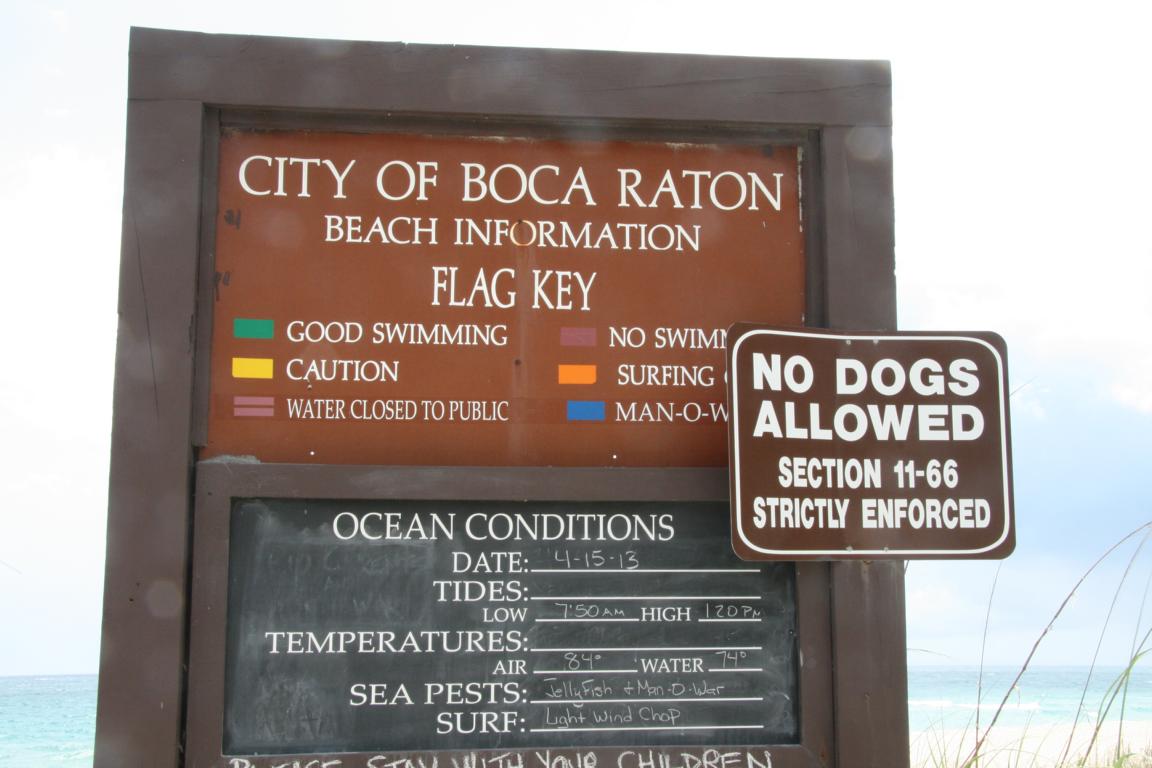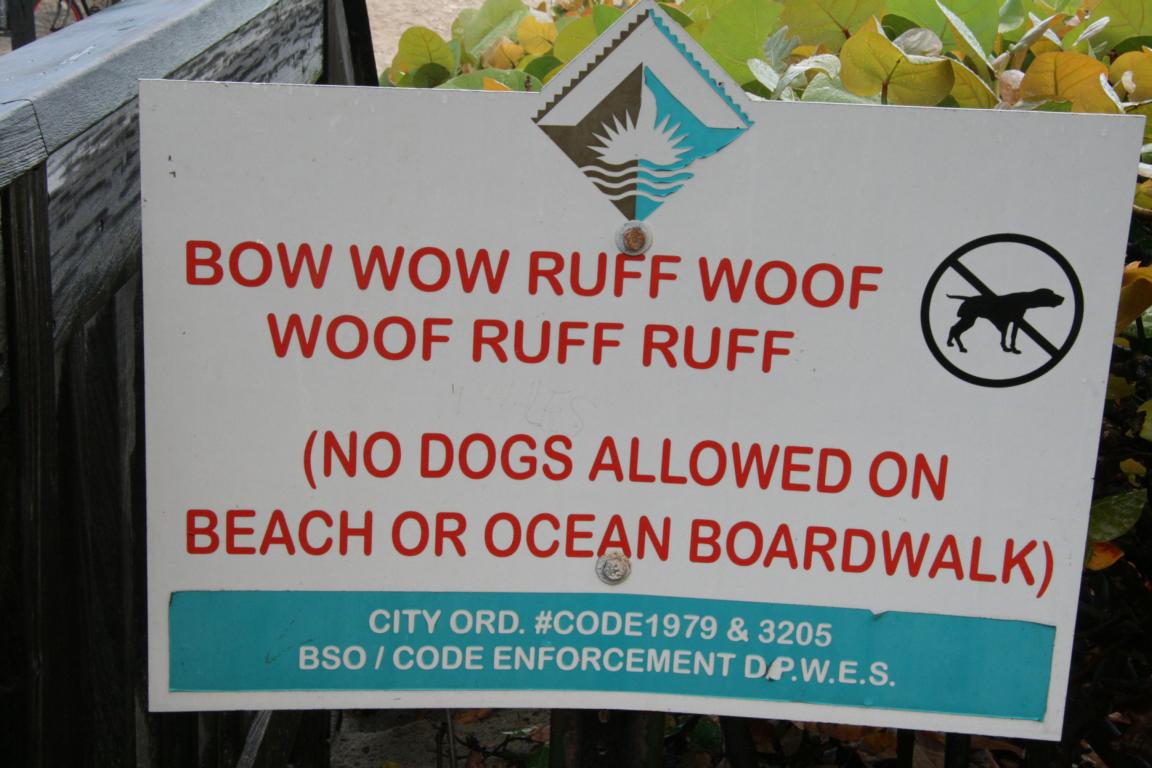Beim nächsten Stopp nahe einer Seebrücke ist wieder wunderbares Wetter. Es müsste Deerfield Beach gewesen sein. Beeindruckend dieses Schild: Ihr könne sicher alle die Hundesprache…