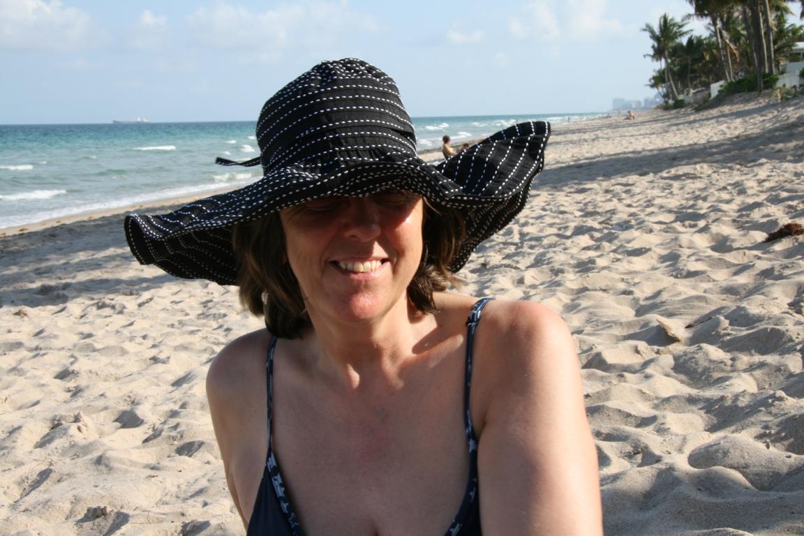 Und am späten Nachmittag, als es nicht mehr so irre heiß war (heute bestimmt über 3o Grad und sehr schwül) 2 Stunden Strand. Man geht gut 10 Minuten bis zum dichtesten Zugang. Dafür sind dort dann zur einen Seite keine Hochhäuser mehr - und hier das Bild vom Hut