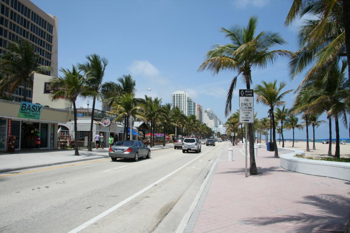 Man kann nicht direkt sagen im Zentrum, aber zentraler am brodelnden Leben als dort, wo wir sind, ist der Strand, an dem man direkt entlangfahren kann, auch sehr schön- dies ist sozusagen der "Hauptstrand" oder zentraler Strand von Fort Lauderdale