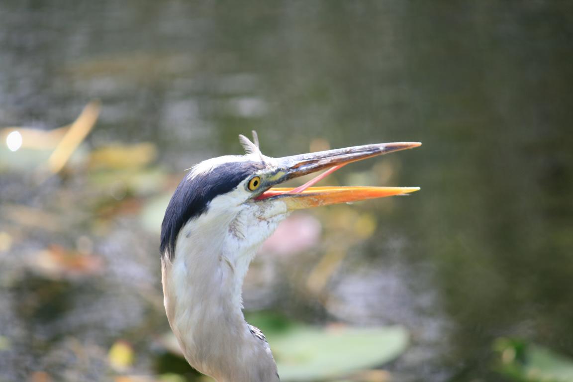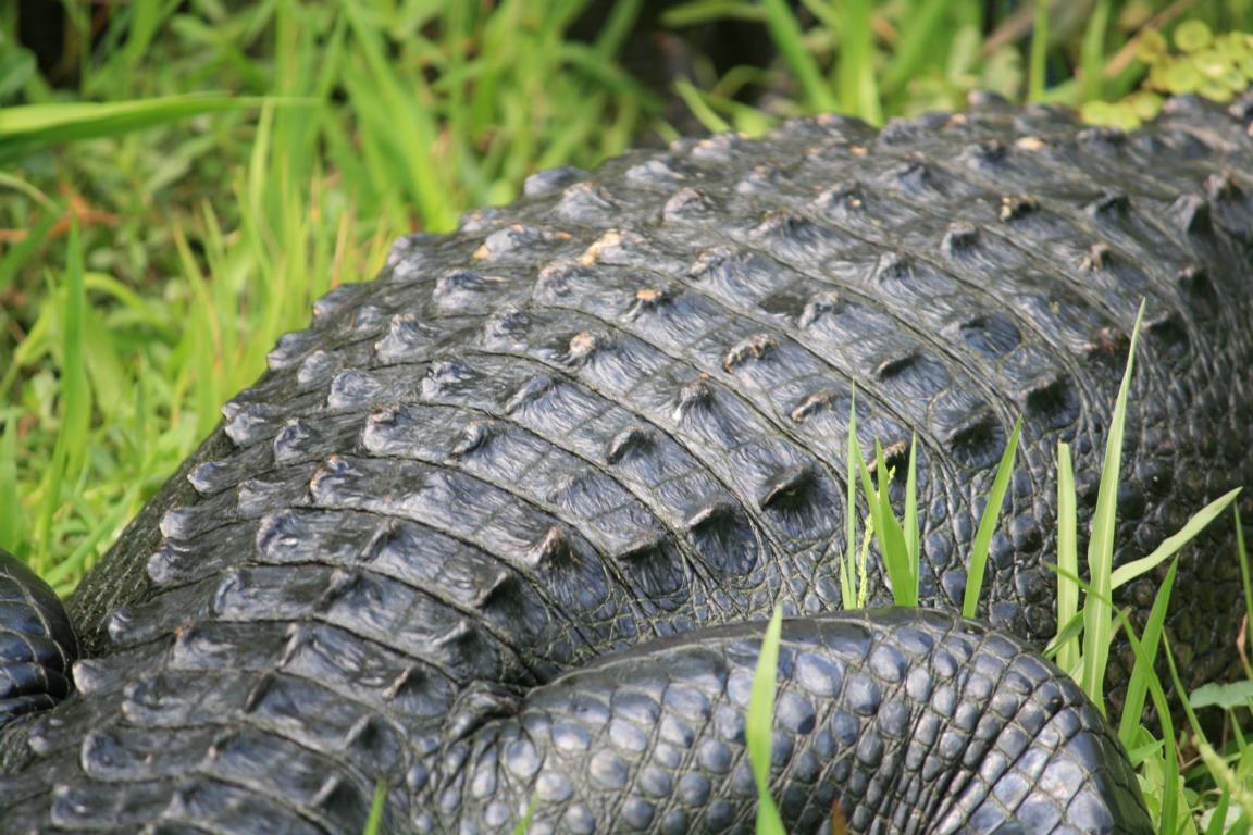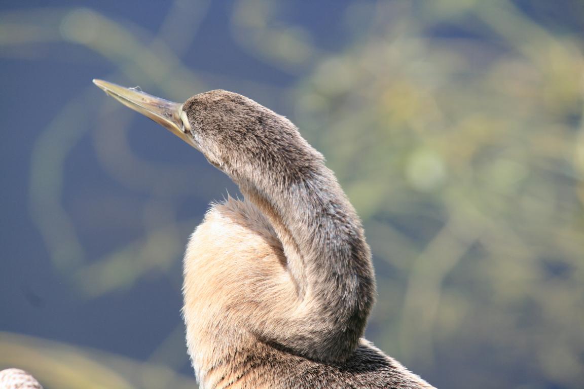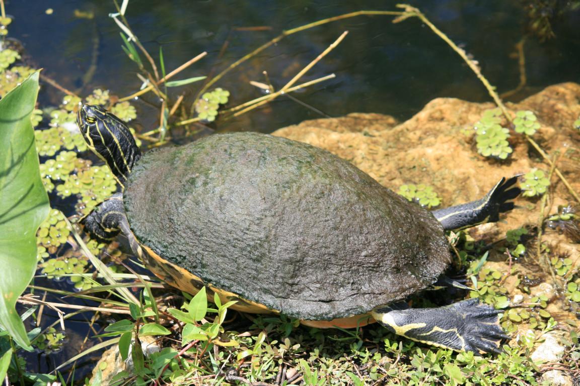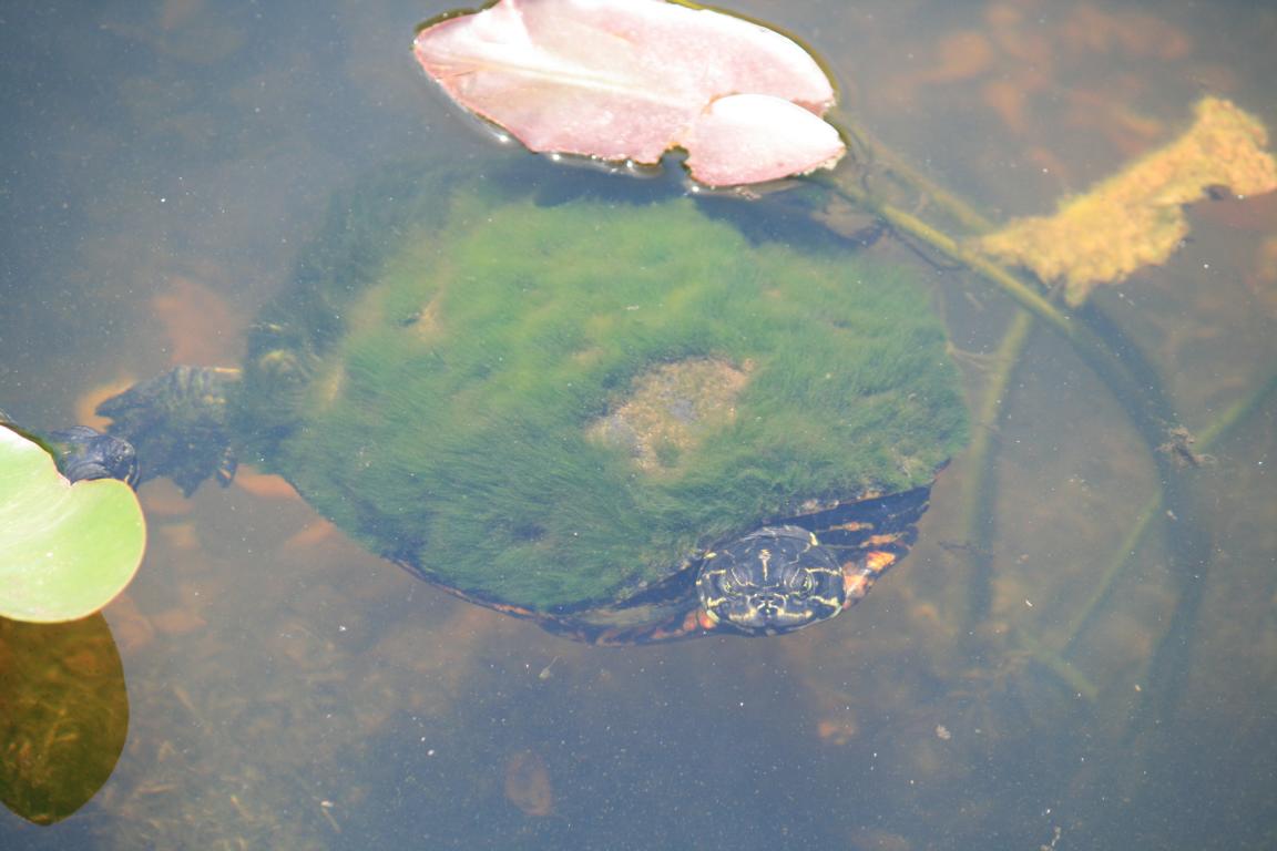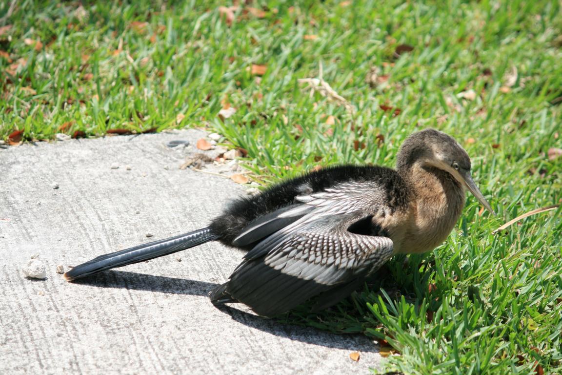 Links vom Weg ist die Grasflusslandschaft - Everglades heißt der Fluss, der durch das Grass fließt, denn genaugenommen istt es ein Fluss. Und rechts ist ein Wassergraben, mit sehr vielen Seerosenblättern - die Blüten kommen gerade erst, an dem man immer wieder Schildkröten, Alligatoren und Vögel sieht. Hier auch ein Reihernest -