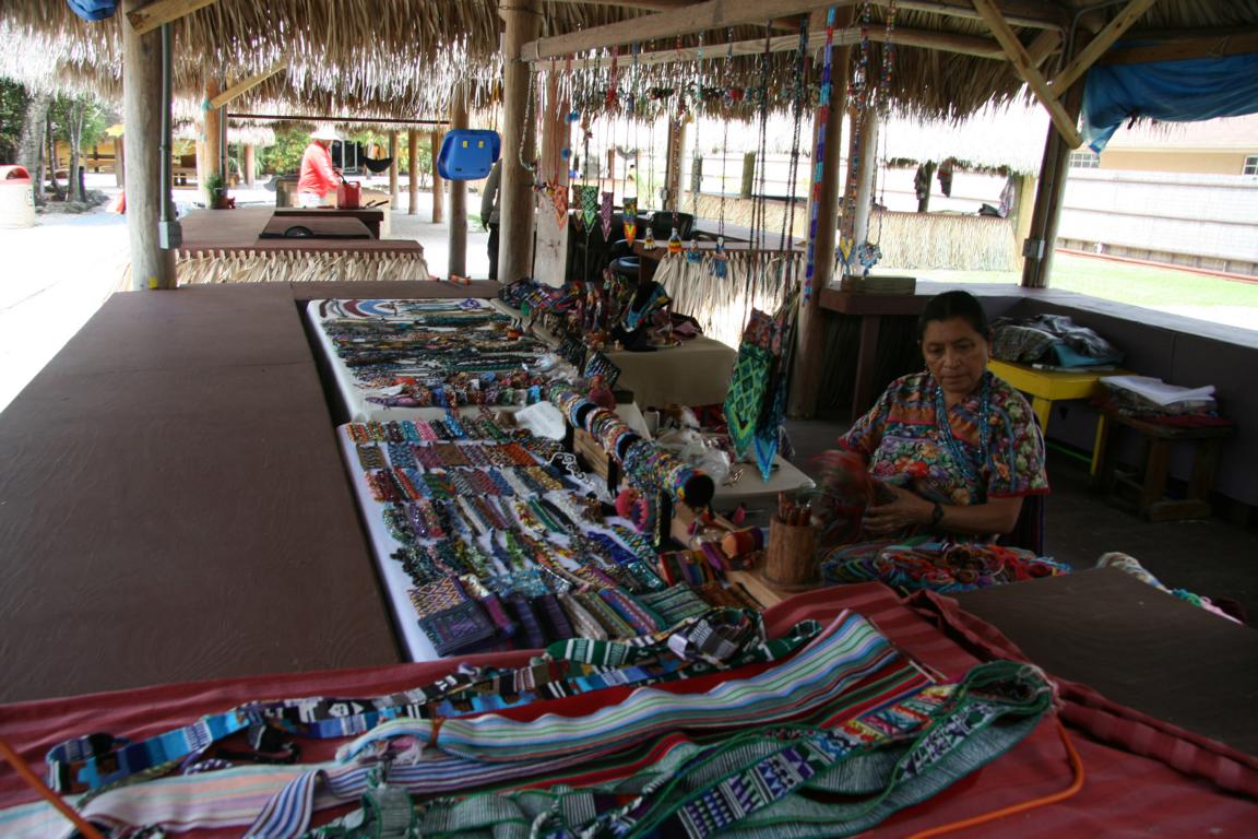 Dann gibt es noch ein Gebäude mit der Aufschrift Museum. Das beste an diesem ist, dass es innen angenehm kühl ist. Ansonsten hängen dort ältere Bilder aus dem Stammesleben - mir werden die Leute richtig unsympathisch bei dem Bilder, auf dem eine Schildkröte gerade zu Ragout verarbeitet wird - und es gibt ein paar Kleidungsstücke und Utensilien. Ja, und dann haben sie ein Gehege in dem lahm diverse Alligatoren liegen und eine Schildkröten herumschwimmen und wo es wohl dann auch eine Alligatorenshow gibt- keine Ahnung wann und wie oft. Die 30 Dollar hätten wir besser anlegen können.