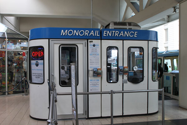 Zurück zum Hotel wollen wir nicht mehr laufen, für heut reicht es uns. So nehmen wir die Monorail, die Seattle Center mit Seattle Downtown verbindet. Die Monorail startet an der 5th Avenue Ecke Pine Street. Eine Fahrt kostet 2,25 USD, die Fahrkarten werden im Zug gelöst.