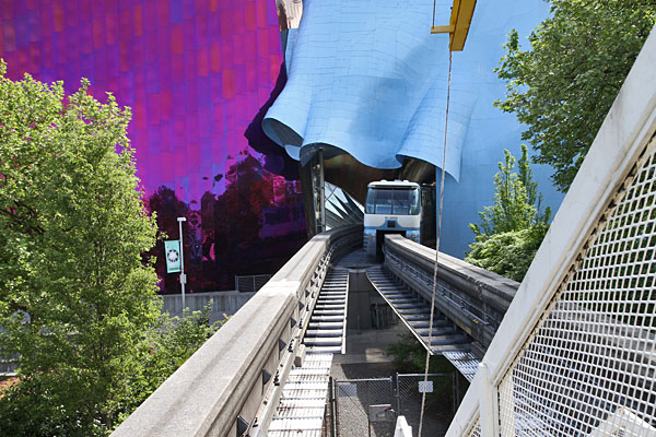 So haben wir noch gut einen halben Tag. Wir beschließen mit der Monorail nach Seattle Downtown zu fahren. Dieses Mal setze ich mich neben die Fahrerin und kann so durch das Fenster ein paar Videoaufnahmen machen.