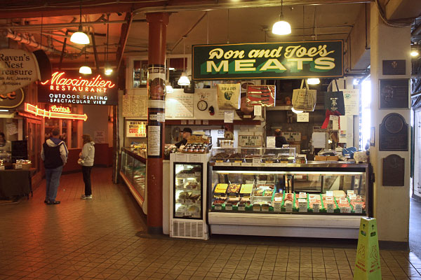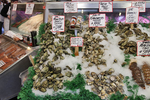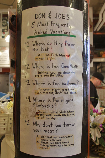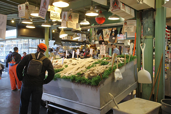 Wir gingen weiter in Richtung Markt. Das hatte uns so gut gefallen, da wollen wir noch einmal schauen, wie die Fische durch die Gegend geworfen werden.