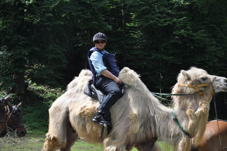 Das Ziel war wirklich ein Ort mit 3 Häusern aber egal, der Hof war da und wir fuhren durchs Tor und da standen die Anhänger mit der Aufschrift Kamelreitschule. Na nun war das Rätsel gelöst.